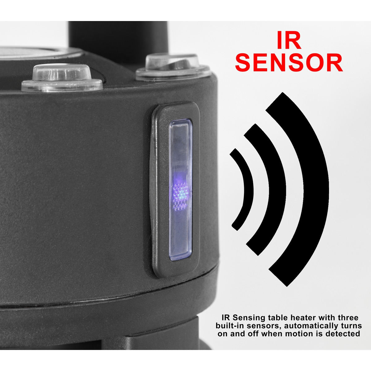 - IR MOTION SENSORS - Three built-in sensors, automatically turns on and off when motion is detected. Motion sensors can be turned off and heater used for a constant heat output. Built-in tip over safety switch.