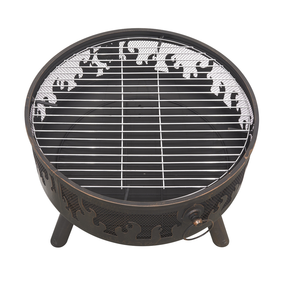 CONTEMPORARY STYLE - Circular fire pit, perfect for relaxing outdoors with family and friends. AL FRESCO DINING OPTION - Features galvanized grill giving the option of an al fresco dining experience. SUITABLE FOR - Use with untreated wood and logs. DIMENSIONS - (Ø x H): Ø61 x 65cm, Bowl Depth: 20cm. SUPPLIED WITH - Fire poker and mesh safety screen to prevent embers and sparks flying. COVER AVAILABLE - Model No. DG123.