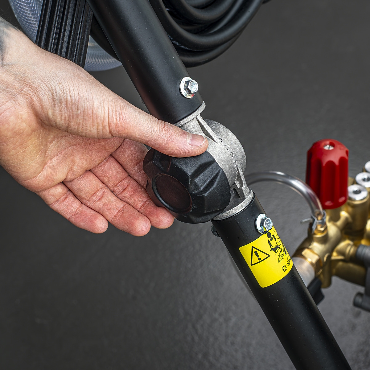 - PROFESSIONAL PRESSURE WASHER - Ideal for commercial applications with 7.6m pressure hose, 3m water pipe, and 1m gun and lance with interchangeable nozzles.
