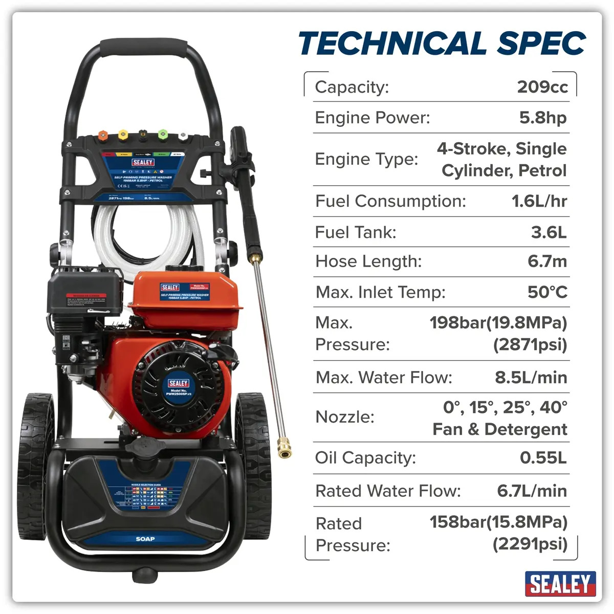 Sealey PWM2500SP Self-Priming Pressure Washer 198bar 5.8hp - Petrol