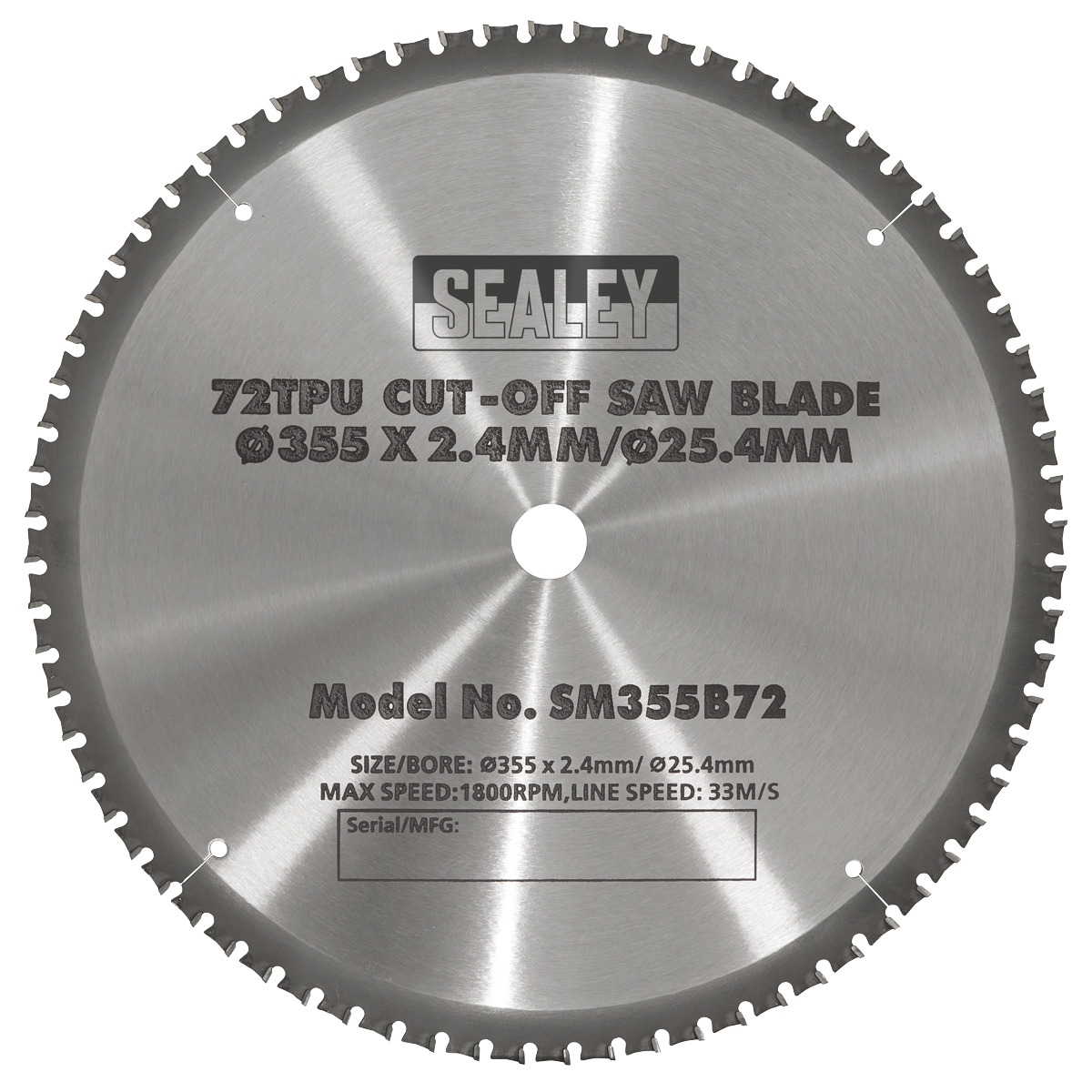 Sealey SM355B72 72tpu Cut-Off Saw Blade Ø355 x 2.4mm/Ø25.4mm
