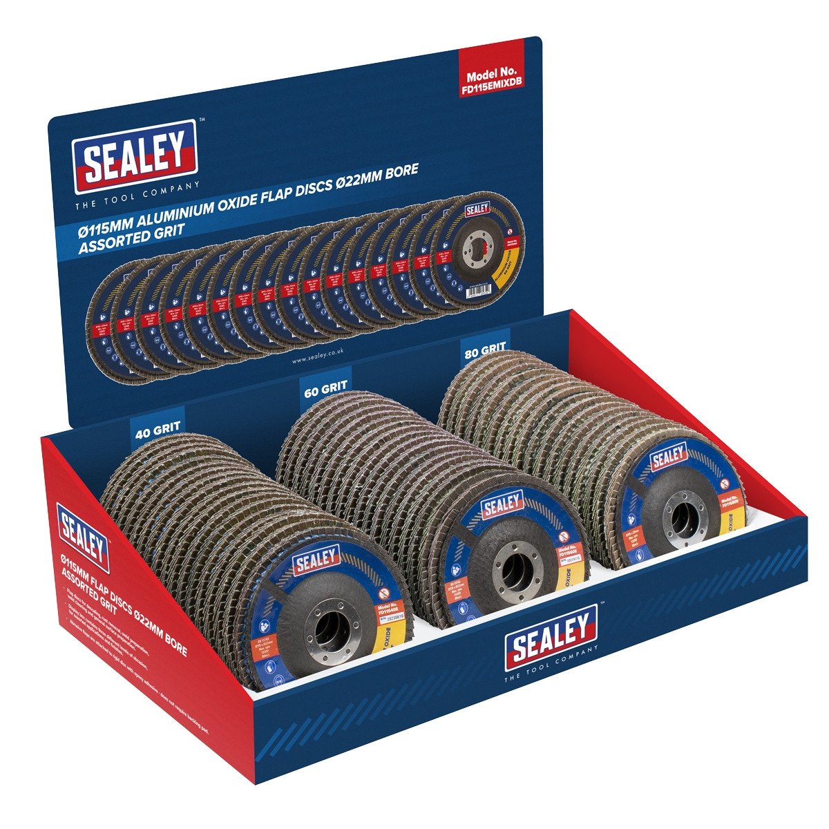 Sealey FD115EMIXDB 115mm Aluminium Oxide Flap Discs Assorted Grit 22mm Bore - Display Box of 60
