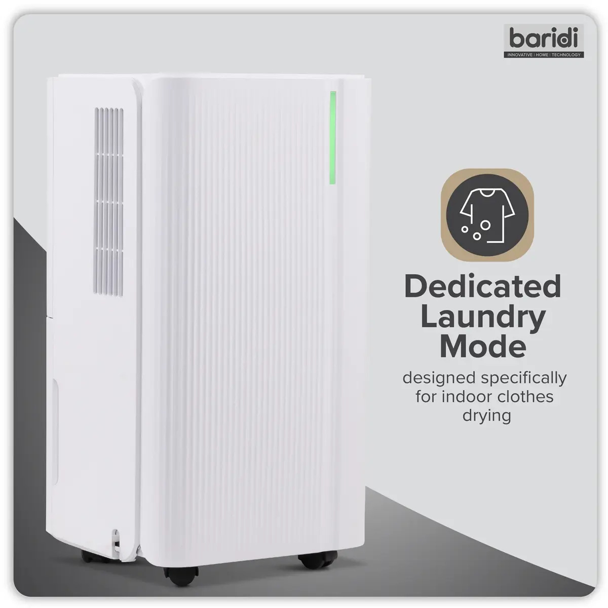- INDOOR DRYING - Laundry mode aids in the fast and effective drying of clothes inside.