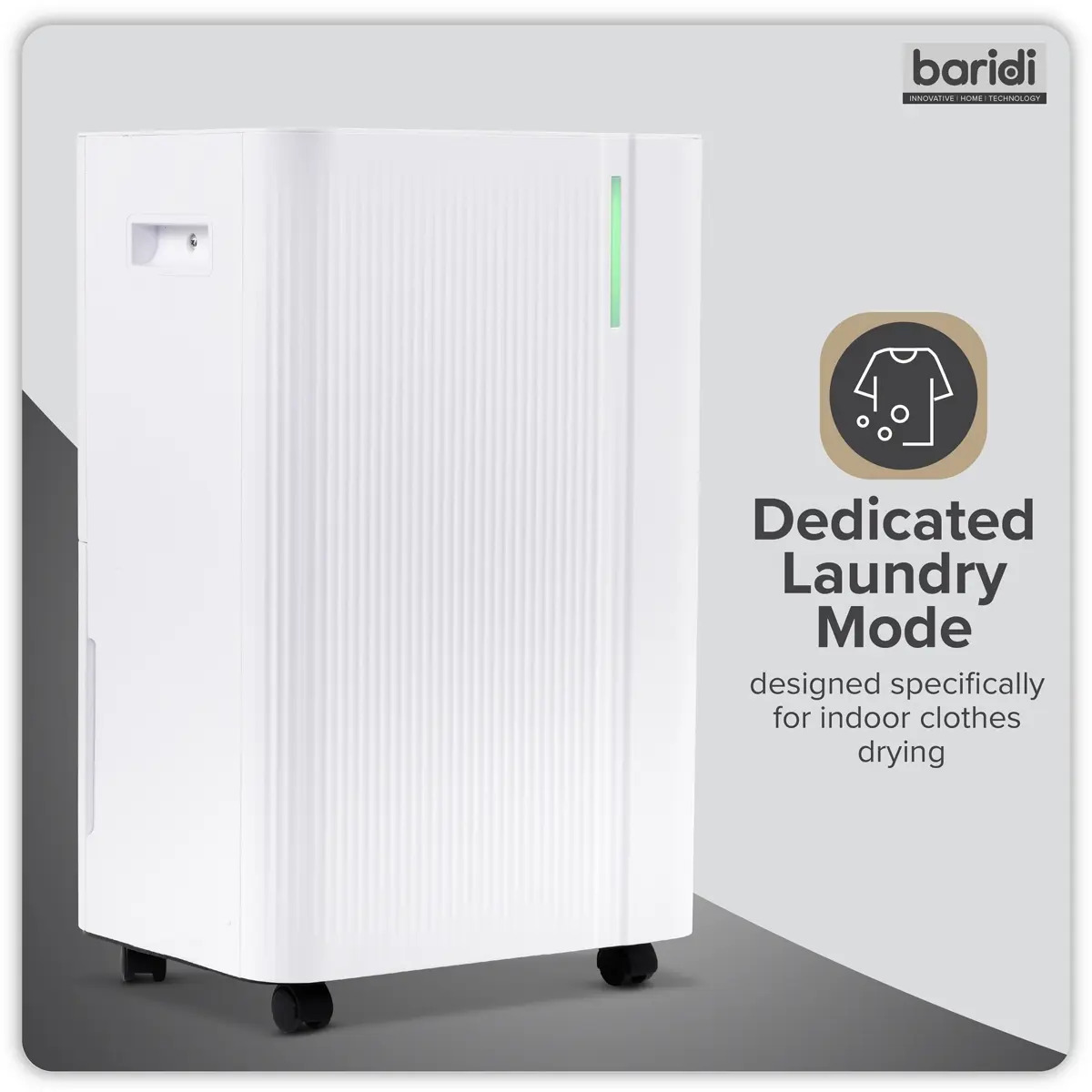 - INDOOR DRYING - Laundry mode aids in the fast and effective drying of clothes inside.