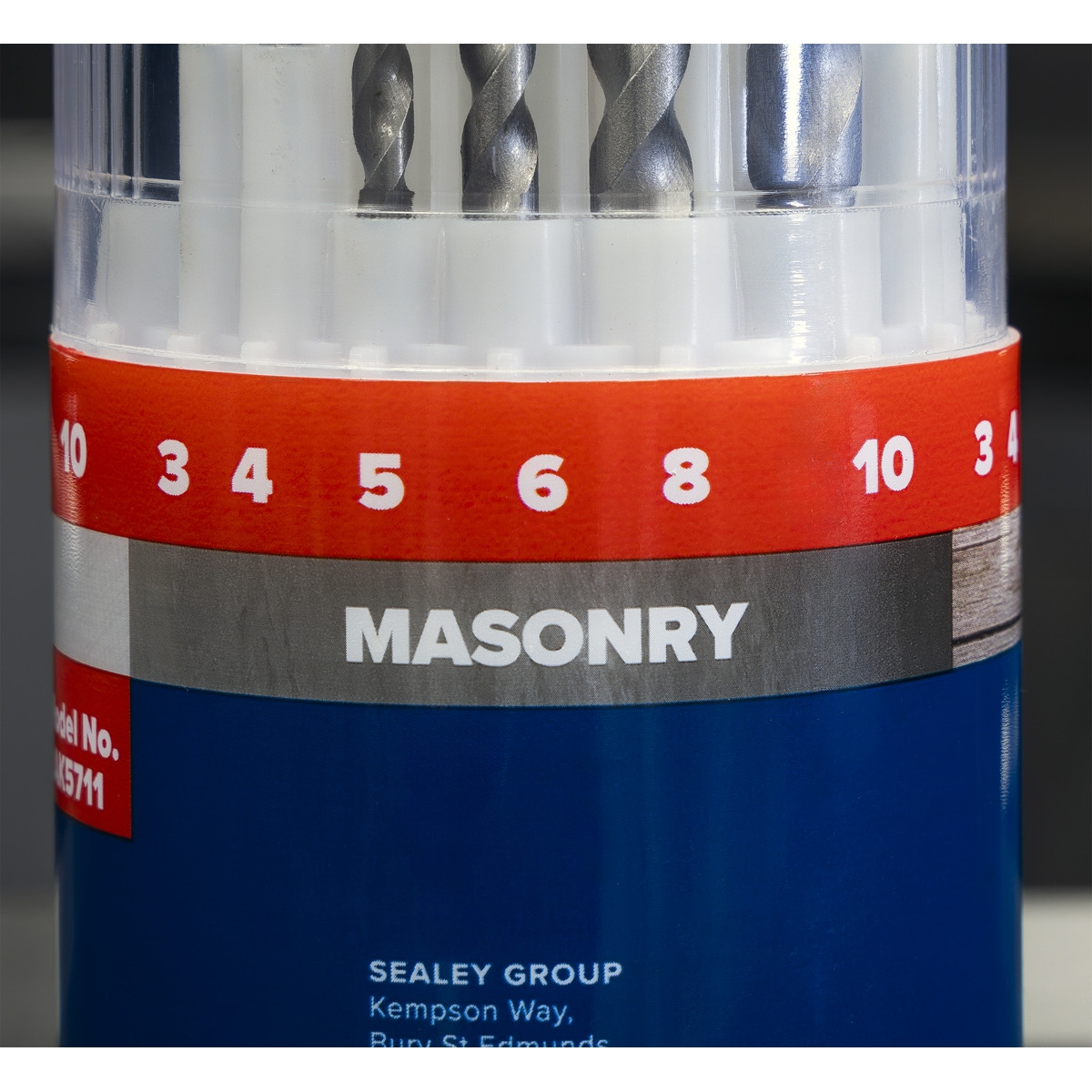 - MASONRY DRILL BITS - Six Milled flute sand blasted masonry drill bits in each set (Ø3, 4, 5, 6, 8, 10mm).
