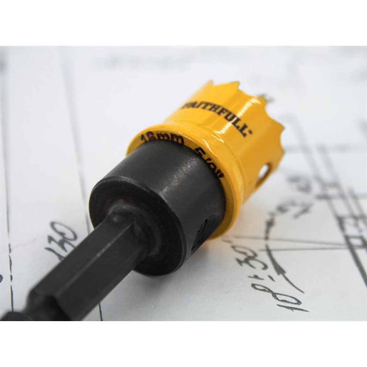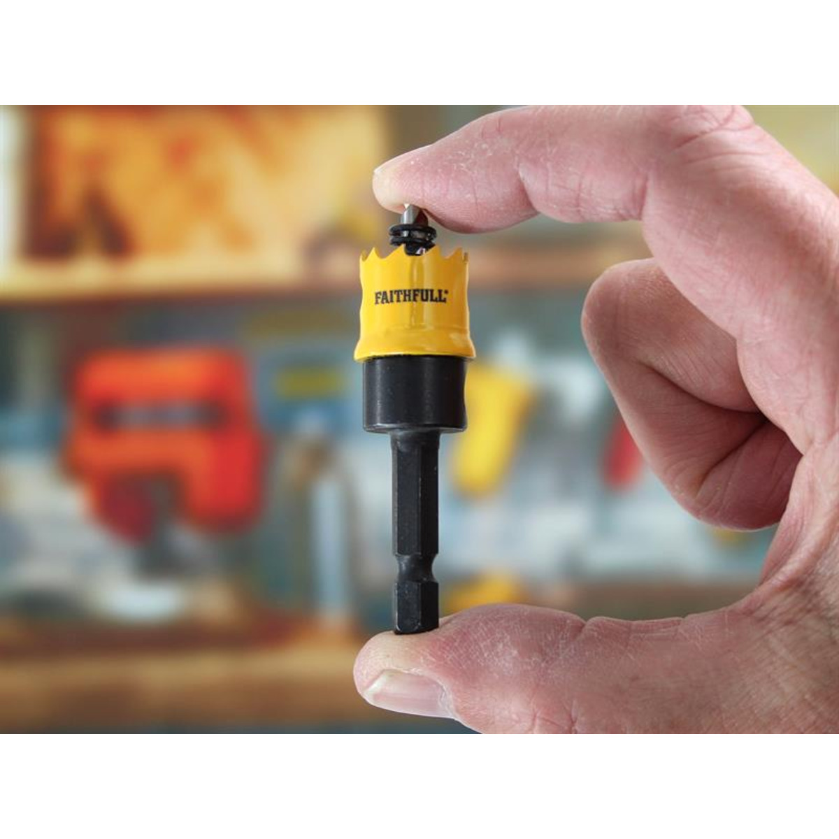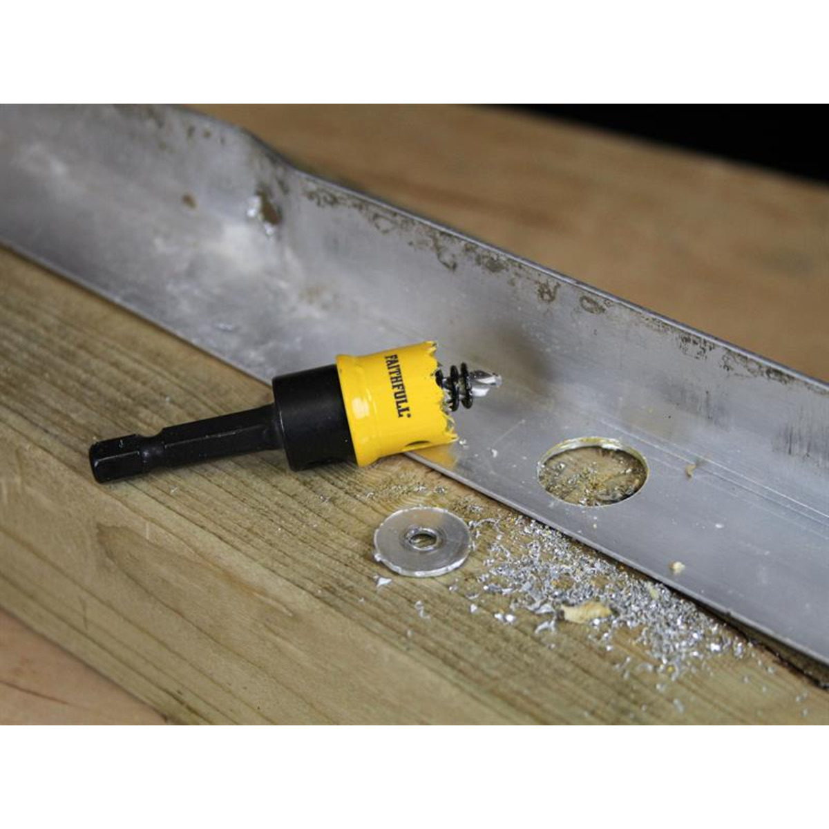 The Faithfull Mini Holesaw with 8% Cobalt Teeth is capable of continuous drilling without clogging, thanks to its internal spring. The HSS cutting teeth provide superior durability and lifespan, while the extra sharp teeth ensure clean and accurate drilling. Specifically designed for drilling through sheet metals, it is most suited for materials up to 1.6mm thick, such as stainless steel, mild steel, and aluminium. Suitable for impact drivers with a 1/4in shank.