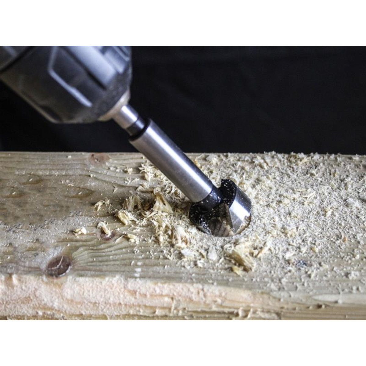 Faithfull Forstner Bits are designed with durability, accuracy, and ease of use in mind. Manufactured from forged, hardened steel for increased longevity, they feature an ultra-sharp spur to provide accurate hole drilling without walking on the material. The steep, angled cutting edges produce smooth, flat holes and create chisel-like curls for fast, clean chip removal. The centre point aids in drilling straight, angled, and overlapping holes in softwood and hardwoods, veneered wood, and non-laminated chipboard. Compatible with all drill drivers and bench drills with a standard 8mm chuck.