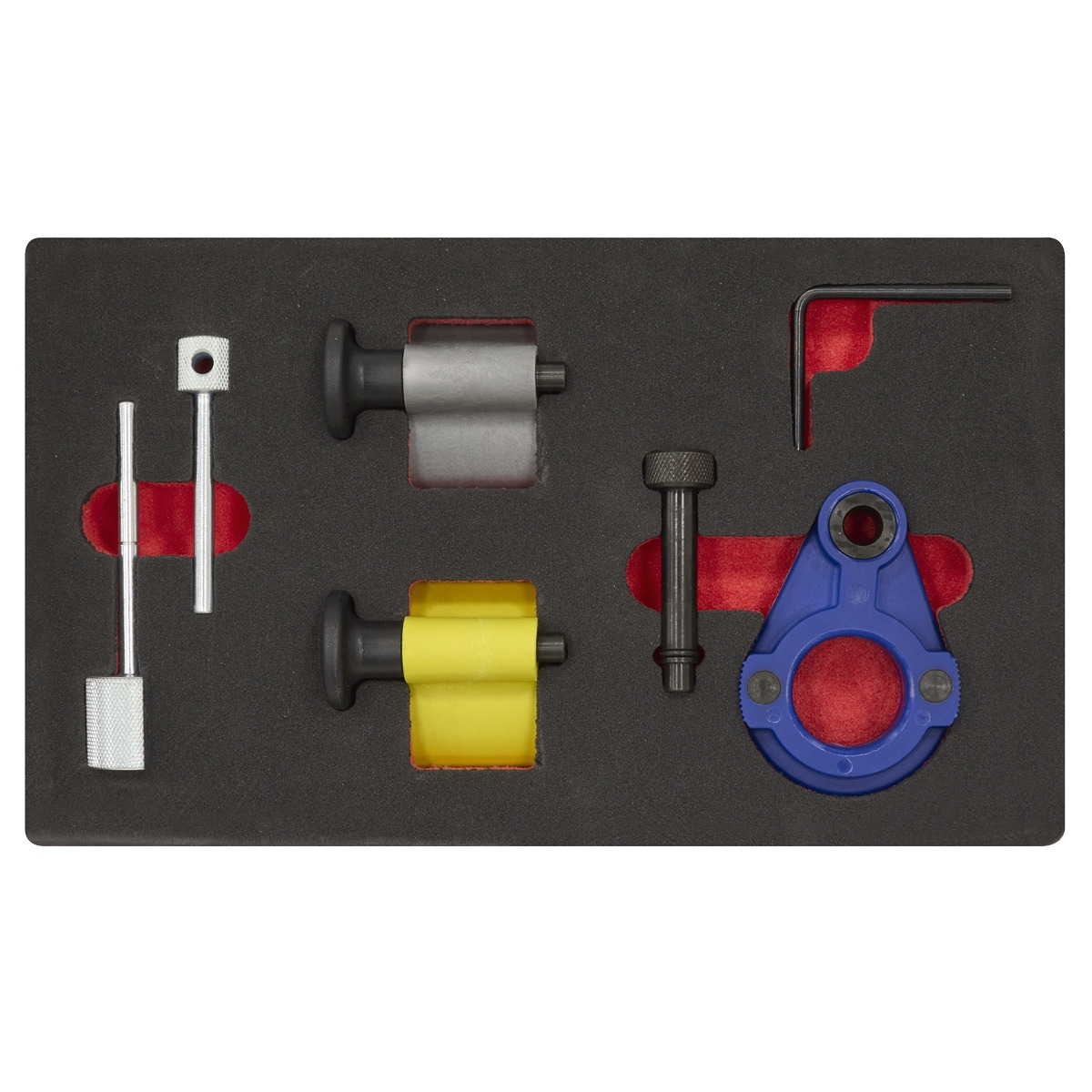 ESSENTIAL TOOLS - Master timing tool kit for a wide range of VAG, Ford and Mitsubishi diesel engines. BELT DRIVE - Suitable for 3 and 4-cylinder belt drive engines. TIME SAVING - Includes oil pump and belt tensioner locking pins. FOAM TRAY - This kit is supplied in a foam tray for easy storage. WARNING TAG - This kit is supplied with warning tag that can be attached to the steering wheel.