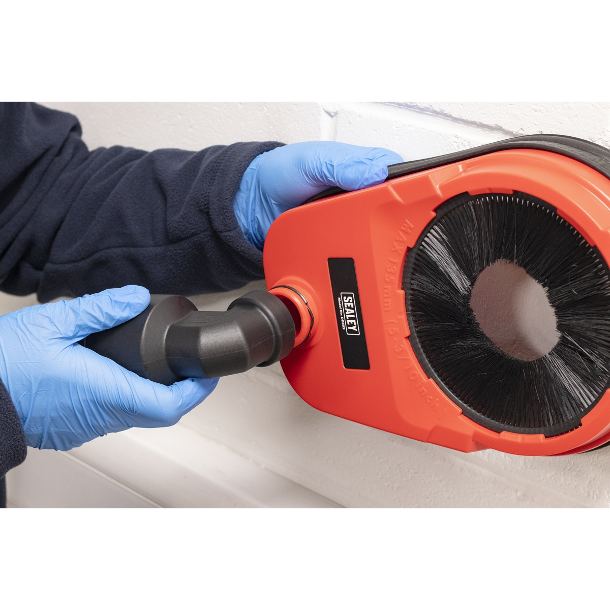 LARGE DIAMETERS - Bore diameter is suitable for large drill bits and core drills with a maximum size of Ø135mm. MAINTAINS - a clean and safer working environment. DUAL AIR CHAMBER - Provides suction to the wall as well as dust collection. RUBBER SEAL - Keeps suction to the wall and stops dust from escaping. ADJUSTABLE - Hose nozzle can be swivelled so that user can reposition hose with ease during use. HOSE NOZZLE - Is adaptable being able to fit hoses between Ø27mm and Ø58mm in diameter.