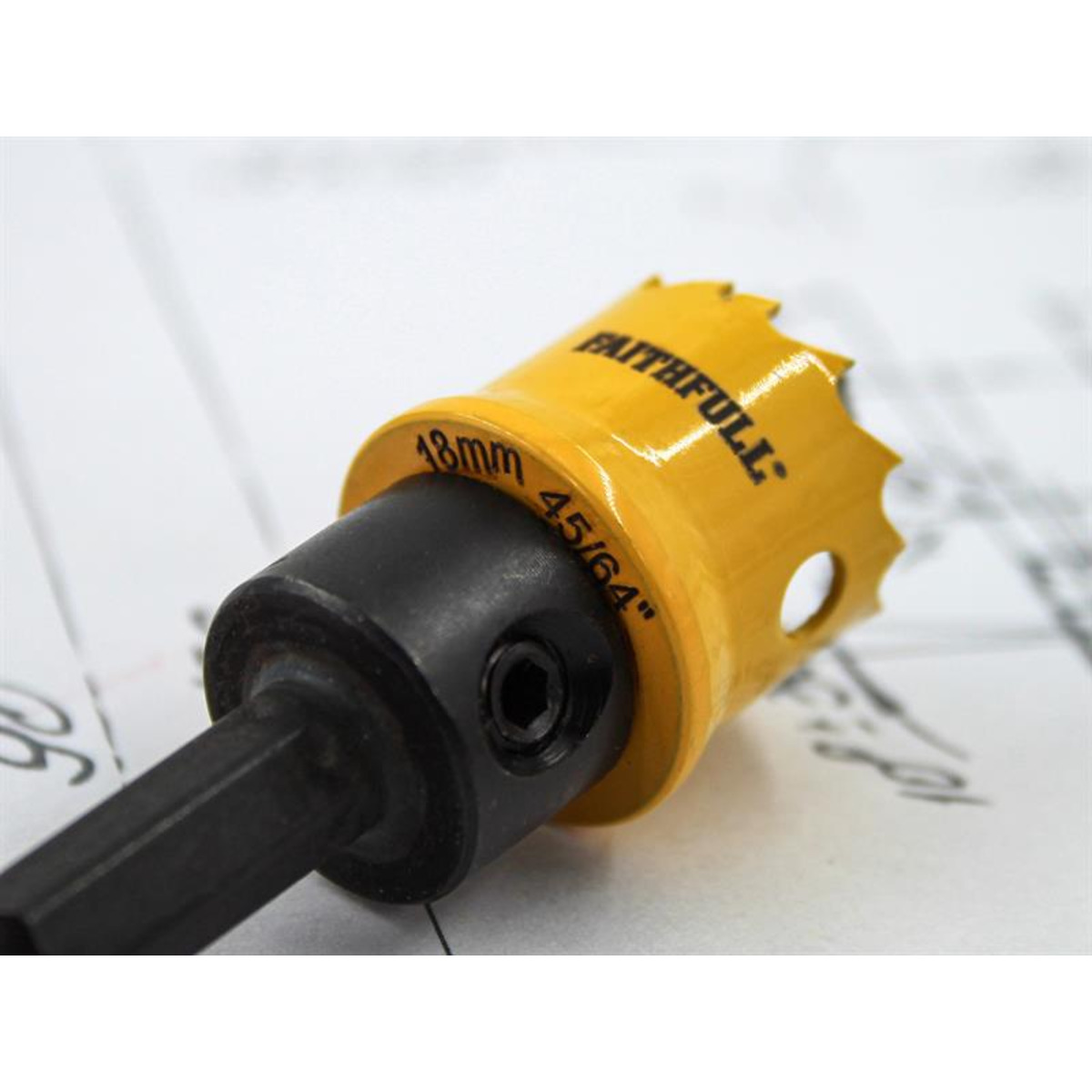 The Faithfull Mini Holesaw with 8% Cobalt Teeth is capable of continuous drilling without clogging, thanks to its internal spring. The HSS cutting teeth provide superior durability and lifespan, while the extra sharp teeth ensure clean and accurate drilling. Specifically designed for drilling through sheet metals, it is most suited for materials up to 1.6mm thick, such as stainless steel, mild steel, and aluminium. Suitable for impact drivers with a 1/4in shank.