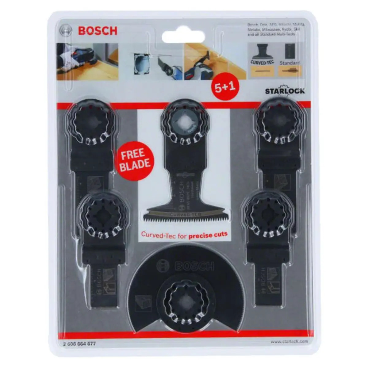 Available from Wow ToolsThe Bosch 2608664677 6-piece Starlock blade set includes a selection of the most popular multi-tool blades for cutting both wood and metal. This versatile set also comes with a FREE Curved-Tec blade for ultra-precise and clean cuts.