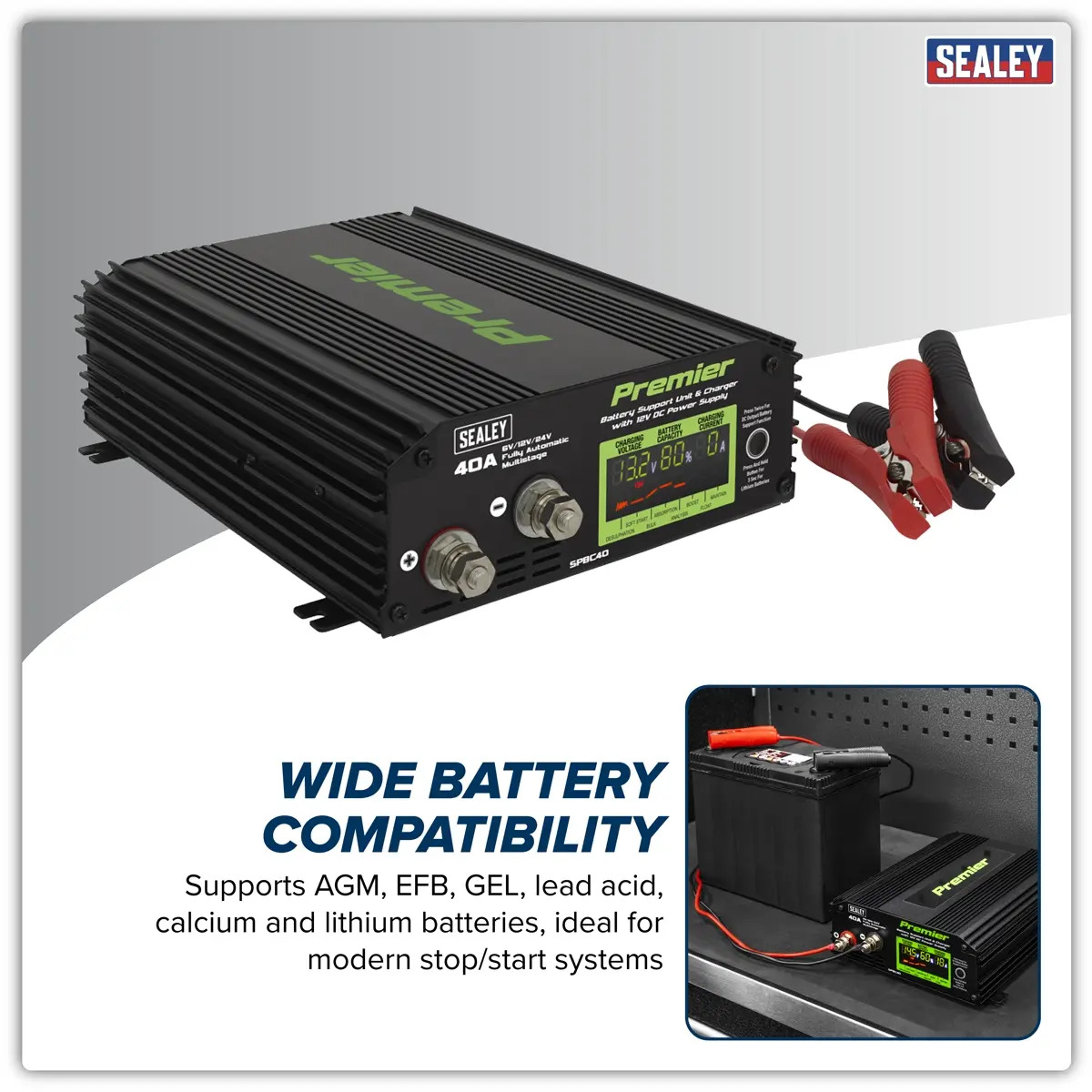 Sealey SPBC40 Premier Battery Support Unit Charger & Maintainer 40A