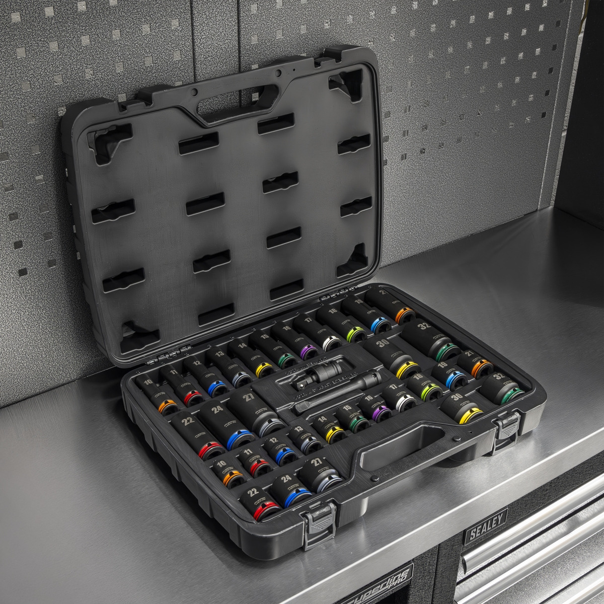 Sealey AK5636M Lock-On™ Standard & Deep Impact Socket Set 34pc 1/2"Sq Drive 6pt Metric