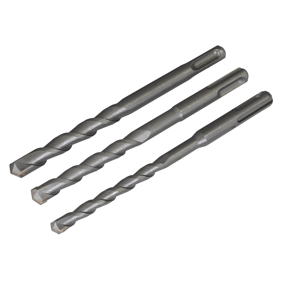 Powerful rotary hammer drill with patented double chuck that can be used with SDS, SDS Plus and drill bits. Three drilling functions. Variable speed control trigger. LED Mains power indicator. Supplied in storage case with 8mm, 10mm and 12mm masonry drill bits and depth gauge. Fitted with 360° auxiliary handle.