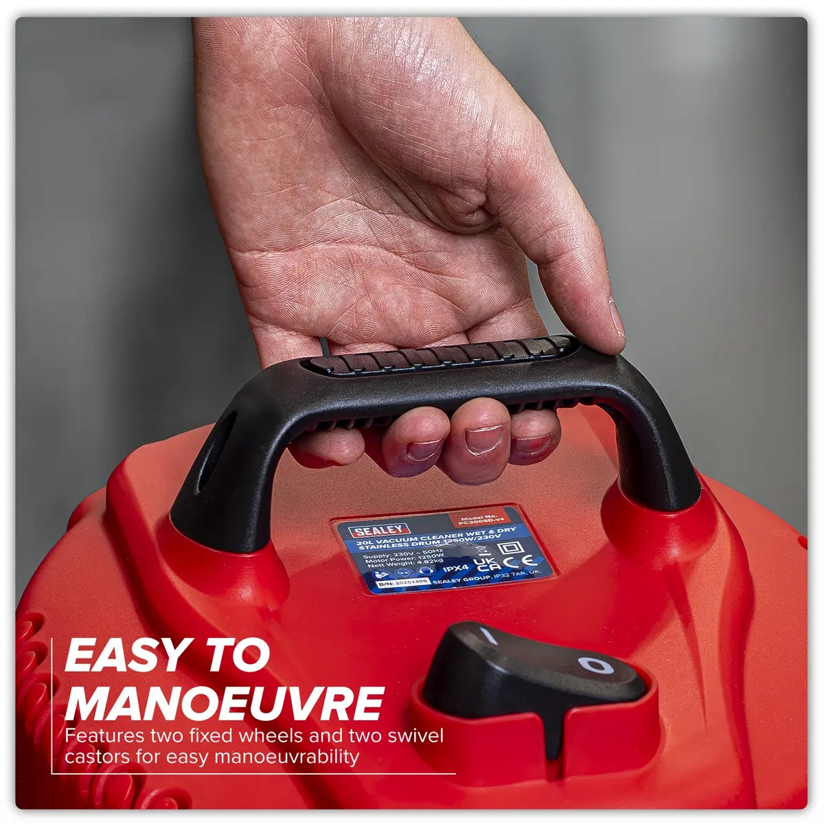 Sealey PC200SD 20L Vacuum Cleaner Wet & Dry Stainless Drum 1250W/230V