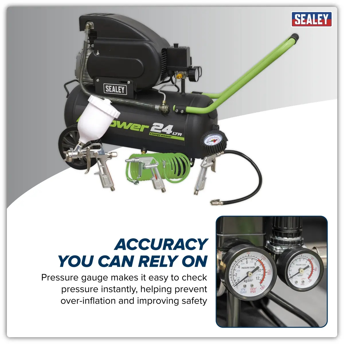 SEALEY SAC2420EPK 24 Litre Direct Drive Air Compressor with Accessory Kit