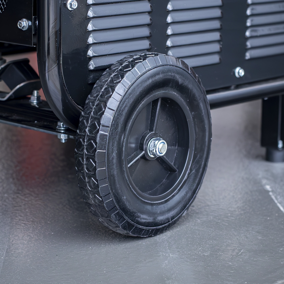 - TRANSPORTABLE - Fold-out handles make the generator easy to move and position, coupled with the solid plastic wheels.