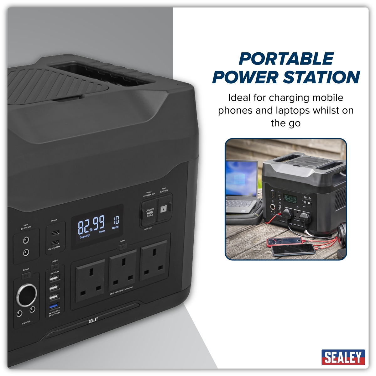 HIGH PERFORMANCE BATTERY - LiFePO4 batteries with a 6X longer lifespan. 2200W - Can charge an average phone battery over 100 times or supplying power to a car fridge for 12hrs (based on a 60W continuous draw SIMULTANEOUS CHARGING - 12 Different outlets mean you are able to connect up to 12 devices at once. BUILT-IN LIGHT- Integral light with five different modes: High, medium, low, flashing and SOS. JUMP START FUNCTION - Supplied with smart jump cables so the power station can be used to jump start a 12V vehicle. BUILT-IN ELECTRICAL PROTECTION - Eight forms of protection including: Over-charge, short-circuit, reverse polarity, temperature protection and more. LOW BATTERY ALARM - Audible alarm will sound at 10% battery to help make sure you never run out of battery. FAST CHARGING - From flat, the power station will charge to full in 8 hours. EXPANDABLE - Chain multiple units together for a greater capacity.