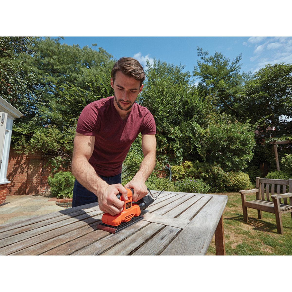 The Black & Decker BEW220 Heritage 1/3 Sheet Sander has been designed to be a lightweight yet versatile sander. Ideal for a number of sanding tasks around the house, such as: sanding flat areas, such as doors, walls or tables, also removing paint, varnish or other surface coatings.