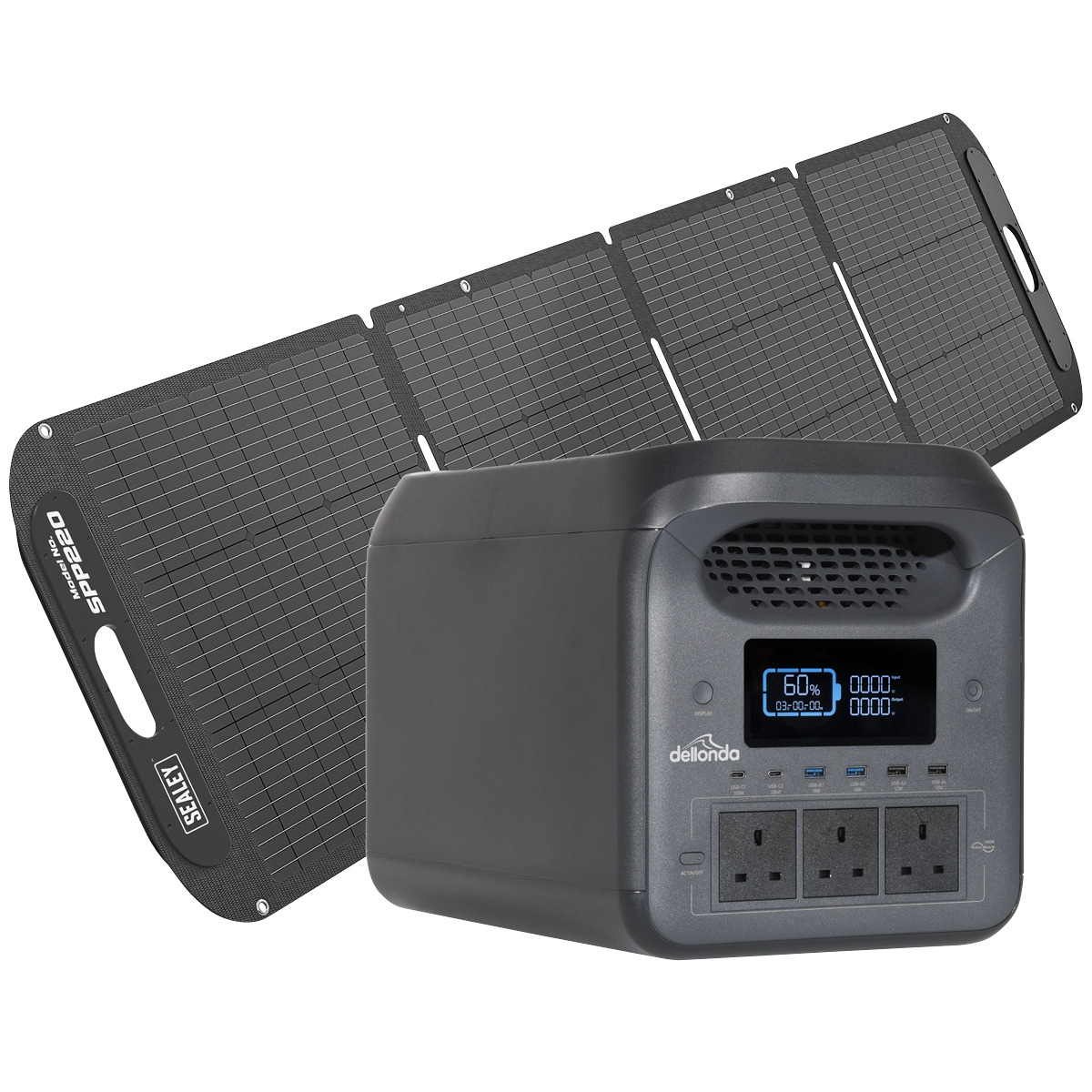 Sealey DL180 Dellonda Portable Power Station 1800W & ETFE Foldable Solar Panel 220W