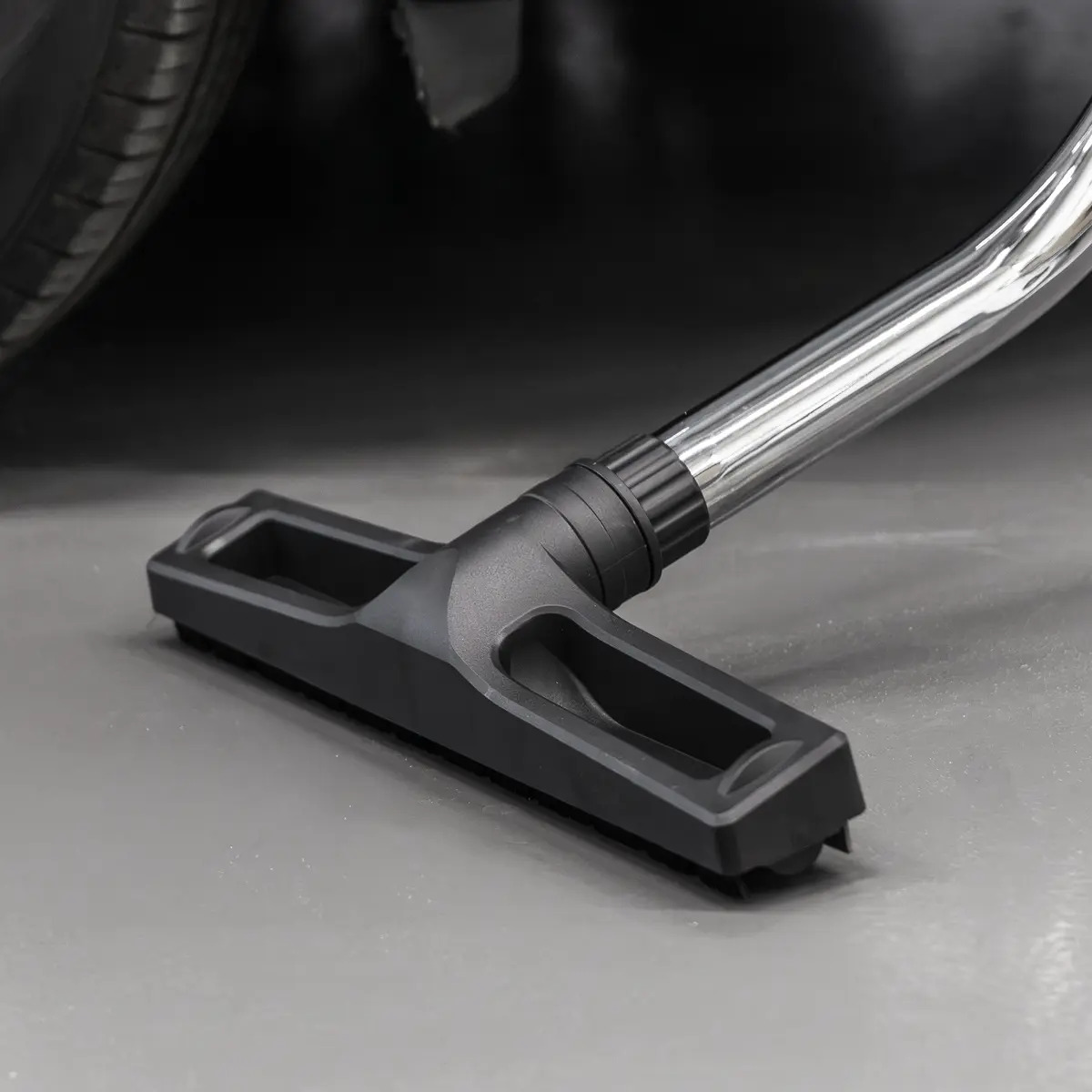 M CLASS - Filters particles down to 1 micron, minimising exposure and keeps potentially harmful dust particles safely contained. POWER TOOL SUPPORT - Features a 1400W 3-pin power outlet and two quick release air fittings. These can be used to automatically turn the vacuum on/off when a power tool is turned on/off. SELF-CLEANING - Cleaning function reverses the airflow to effectively clean the filter and restore suction. This also means the vacuum can be used as a blower. WET & DRY - Fitted with a shut-off valve and sponge filter for vacuuming liquid or HEPA filter for dry vacuuming. ACCESSORIES - Fitted with 5m cable and 2.5m suction hose. Supplied with two stainless steel extension tubes, washable M Class HEPA filter, M Class dust bag, foam filter, floor brush, round brush and crevice tool. SWIVEL CASTOR WHEELS - Equipped with fixed rear wheels and two swivel castors for easy manoeuvrability.