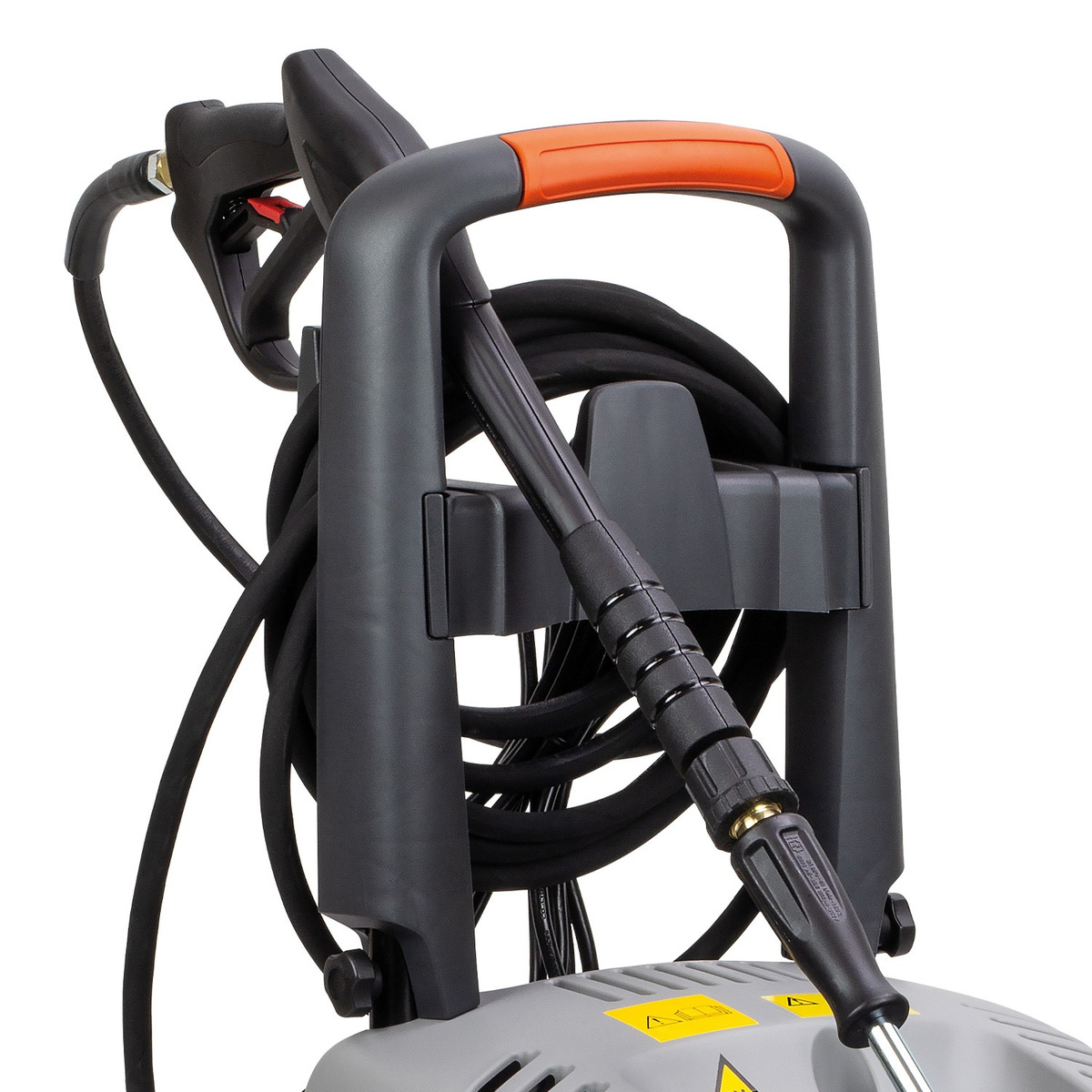 Built with a brass-headed COMET Axial plunger pump and heavy-duty 2-pole induction motor, it is designed for long life in demanding environments. The integrated Total Stop function reduces wear and saves energy by shutting down power when not in use, while large wheels make movement simple across uneven ground.