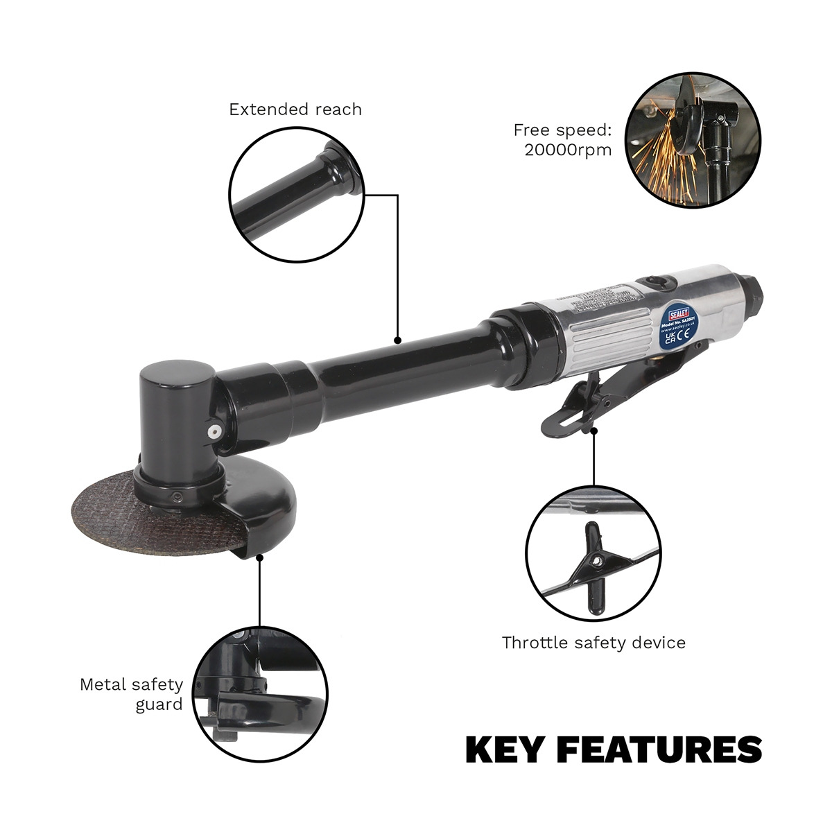 Sealey SA2501 Long Reach Straight Air Cut-Off Tool 75mm