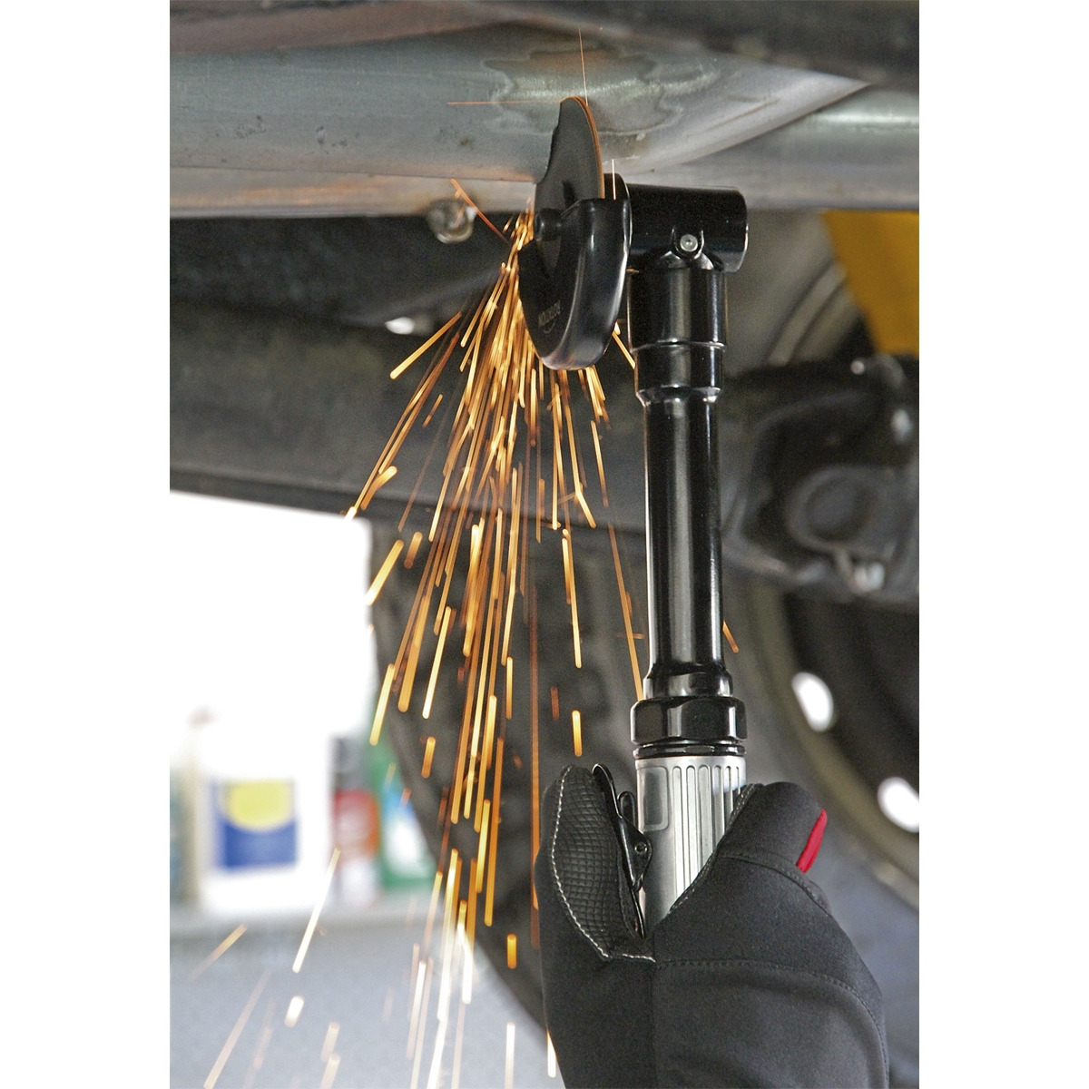 - Extended reach cut-off tool is especially suitable for cutting off rear axle and exhaust tubes/brackets.