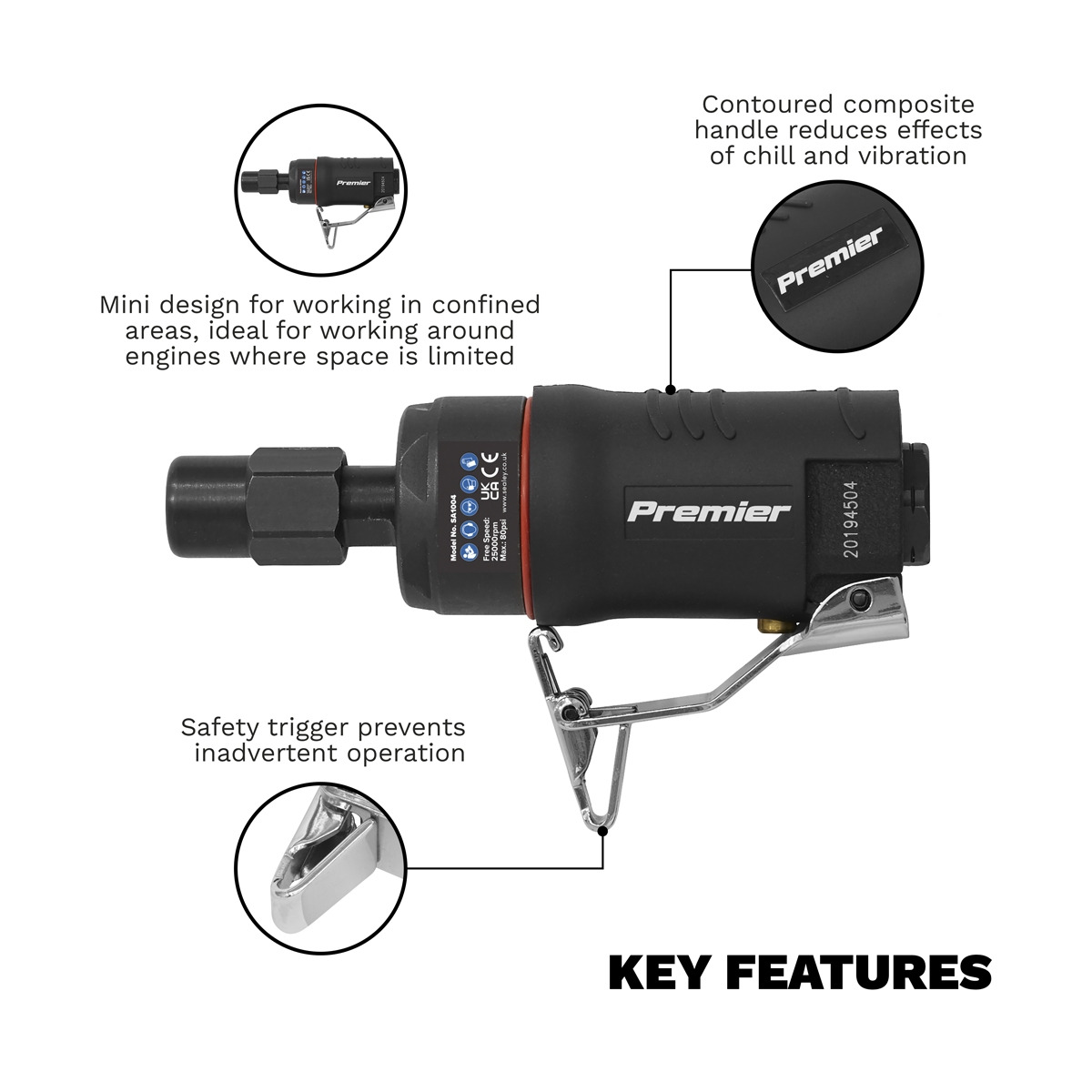 Sealey SA1004 Premier Mini Air Die Grinder 6mm