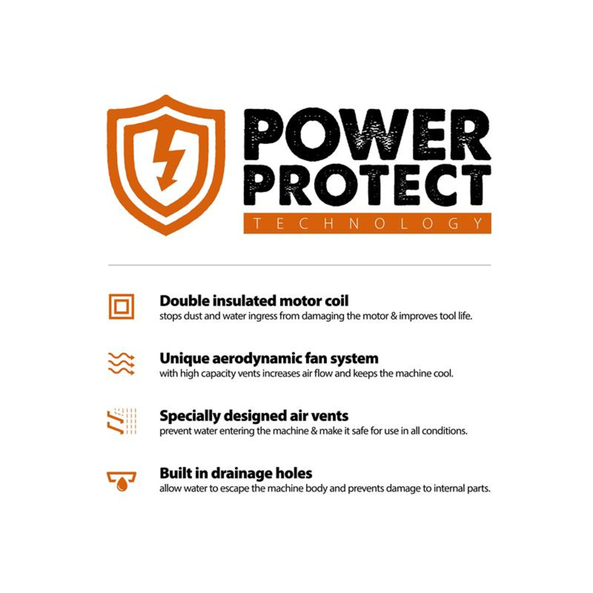 The motor starts first time, every time, and does not emit any harmful fumes, making this suitable for use indoors or in enclosed spaces. Plus, you don't need to worry about expensive fuel or servicing. It features a wheeled skid plate that makes light work of long, ground-level cuts and it also lifts the blade off the ground so it can be put down even while the blade is spinning.