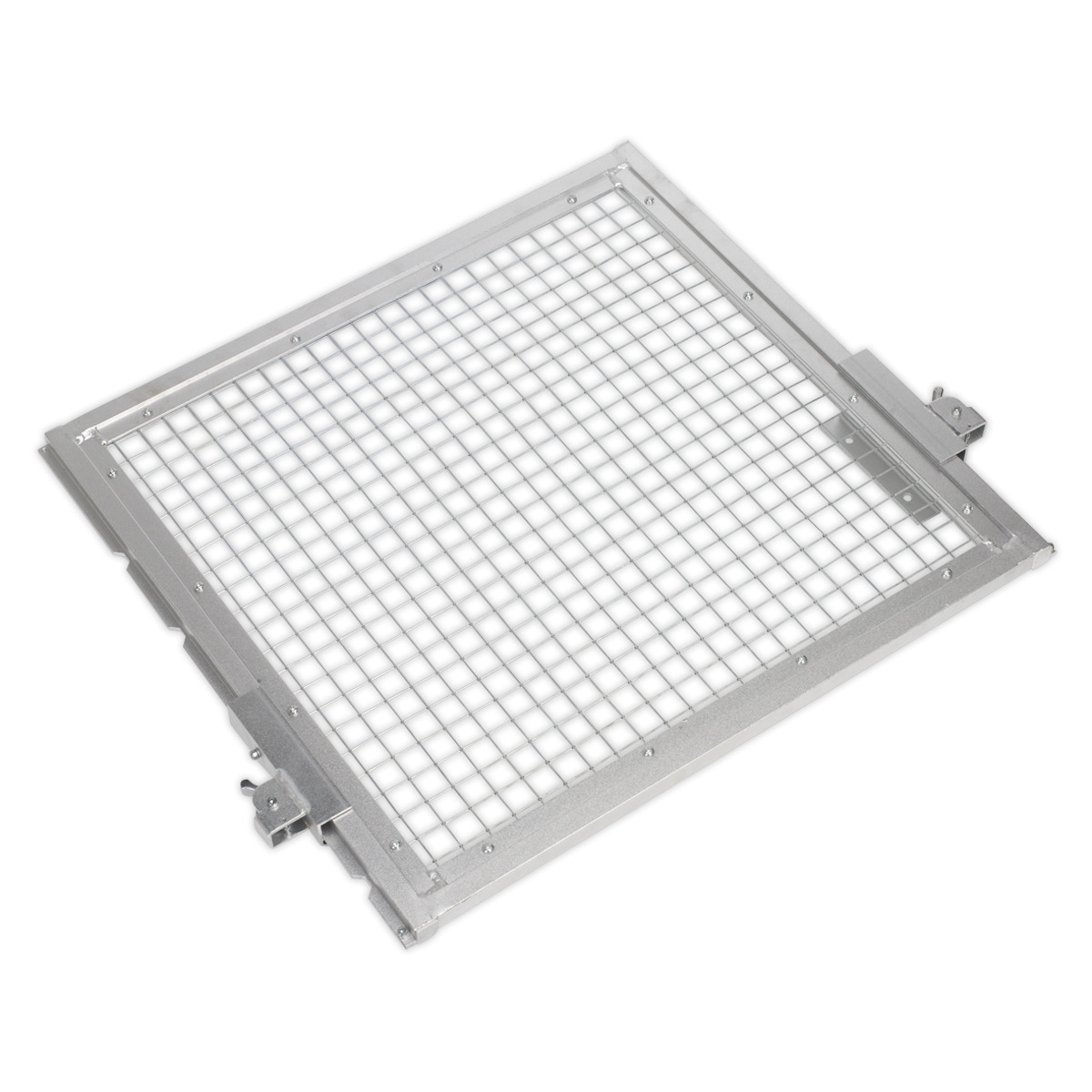 Lightweight aluminium frame with tough steel mesh. Adjustable guard protects the user and/or passer by from being injured if workpiece is accidently dislodged under load. Bolts onto either side of the table and features five height increments, allowing the workpiece to be placed onto table with no obstruction. One-way spring loaded locking clips then allow the guard to be pulled up quickly and snap straight into position for full protection.
