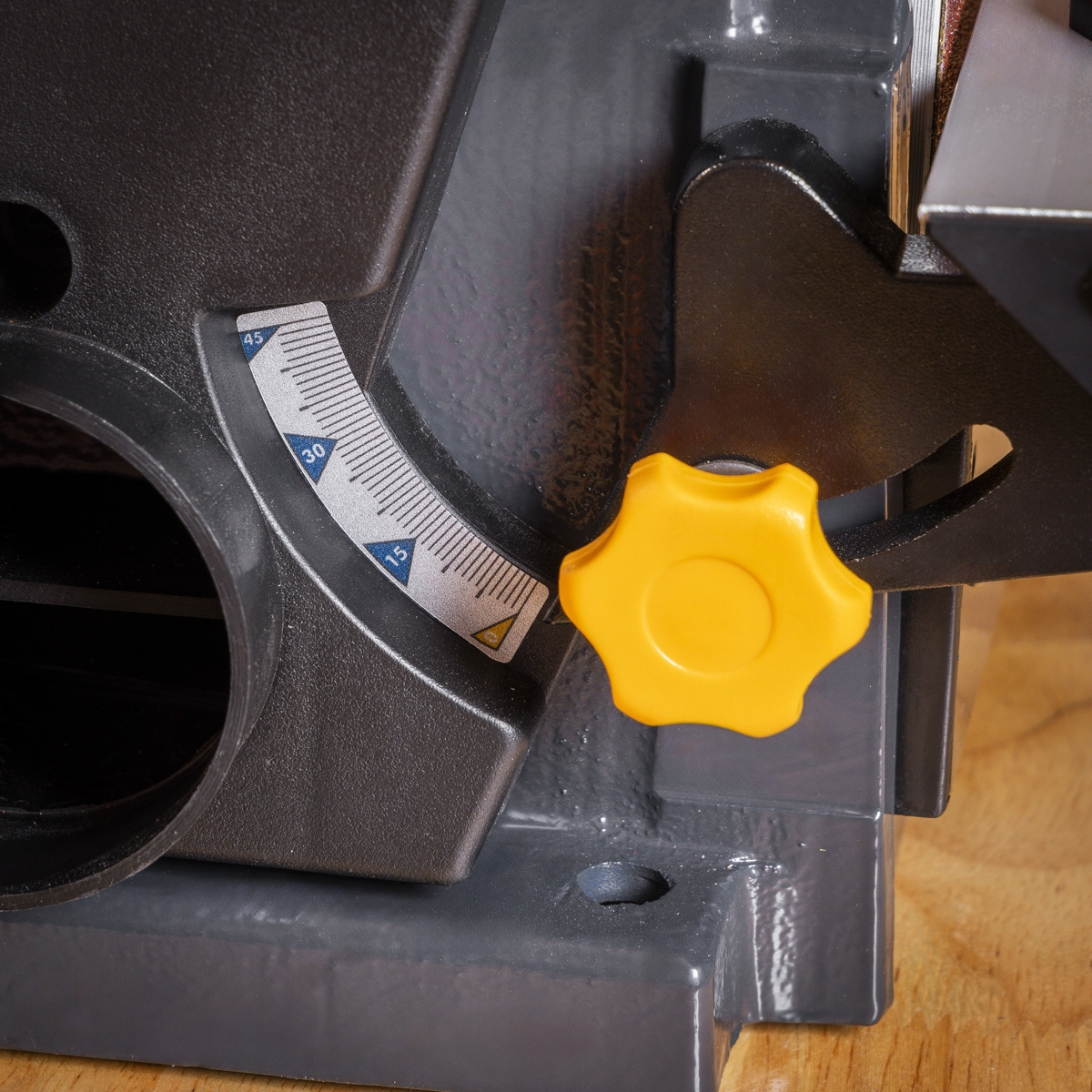 - ADJUSTABLE - The sanding belt can be used in a vertical or horizontal position or at any other angle in between. The sanding disc table can be tilted to any angle up to 45° and is supplied with a mitre gauge for accurate angle sanding.