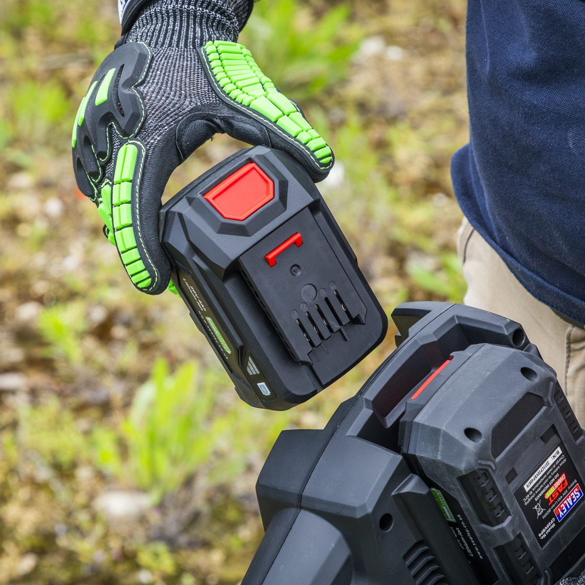PART OF THE SV20 SERIES - Designed for the professional, offering heavy-duty, high performance, durable tools with lightweight composite designs for superior control and comfort. BATTERY POWERED - Operates using 2 x 20V batteries from the Sealey SV20 Series (batteries must be of the same Ah rating). EFFICIENT - Wide cutting width of 35cm (brush cutter) and 25cm (trimmer). 2-IN-1 - Supplied with line cord for cutting and trimming grass, and a metal blade for cutting heavy growth and weeds. COMFORT - Body strap and dual handles for comfort during prolonged use.