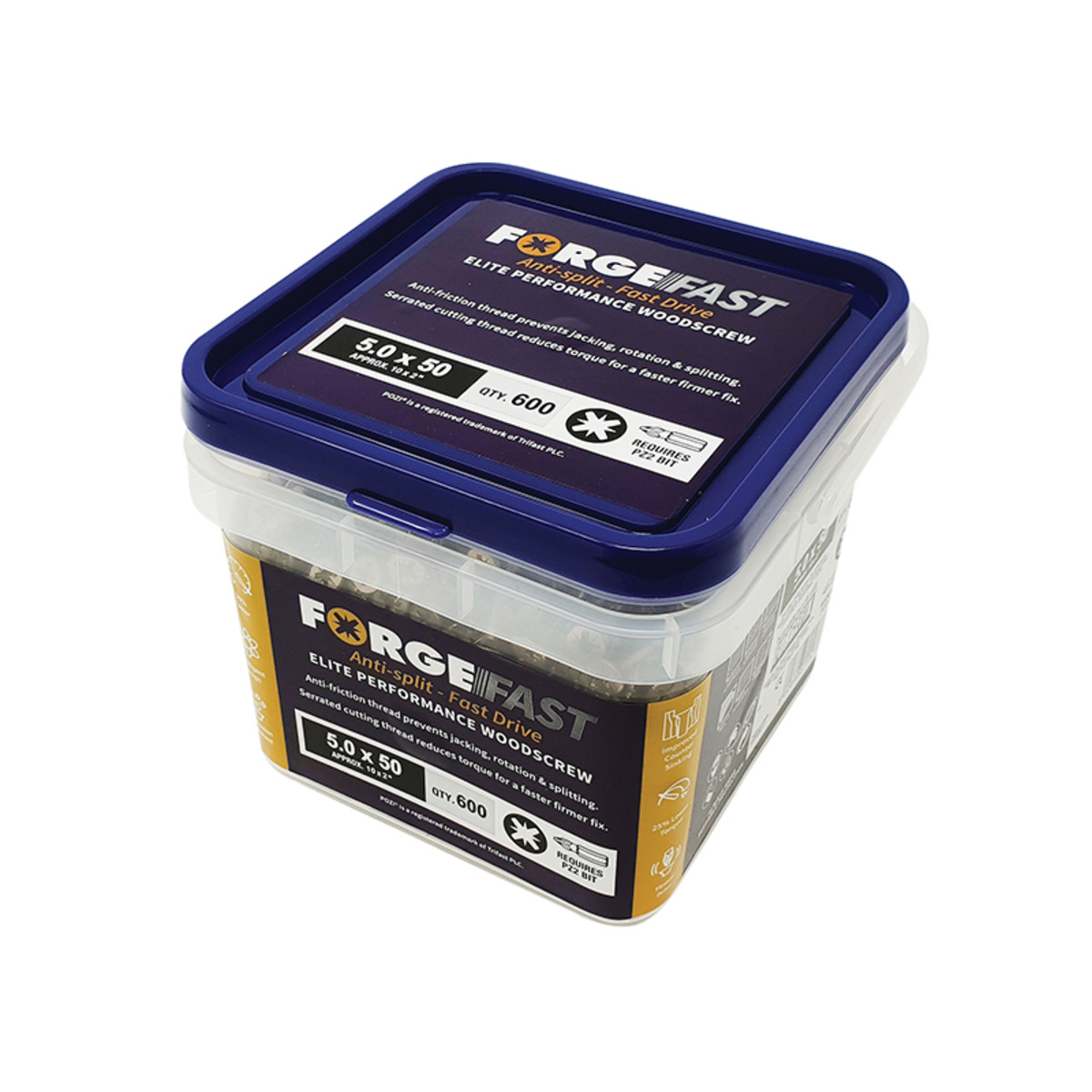 ForgeFix FORFFP550YT ForgeFast Pozi Compatible Elite Performance Wood Screw ZY 5.0 x 50mm Tub 600