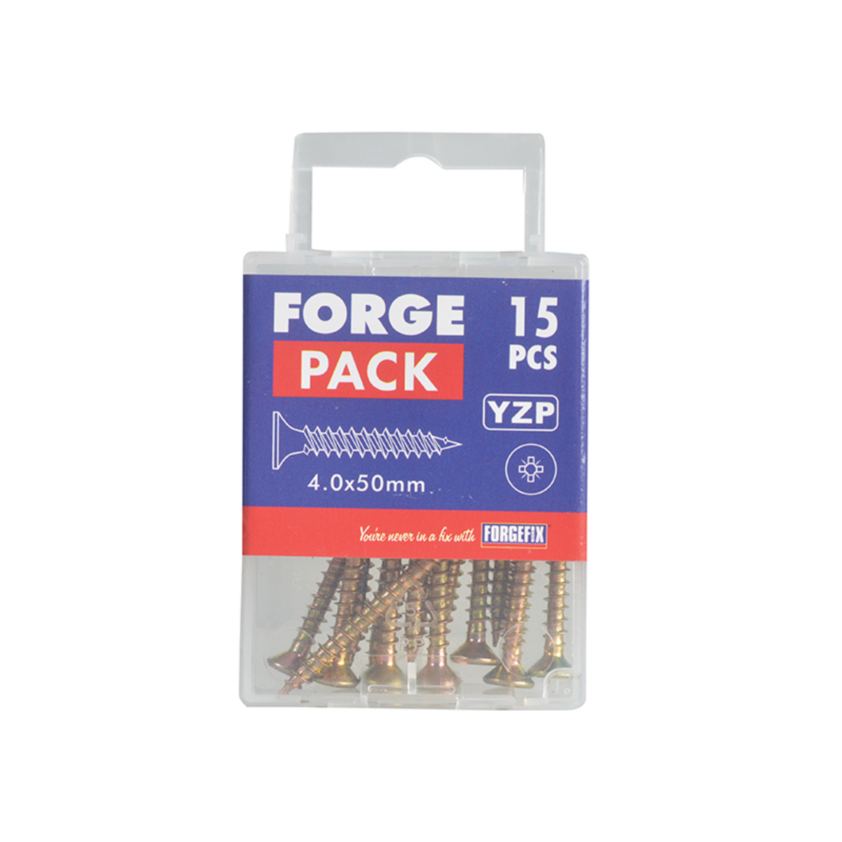 ForgeFix FORFPMP450Y Multi-Purpose Pozi Compatible Screw CSK ST ZYP 4.0 x 50mm Forge Pack 15