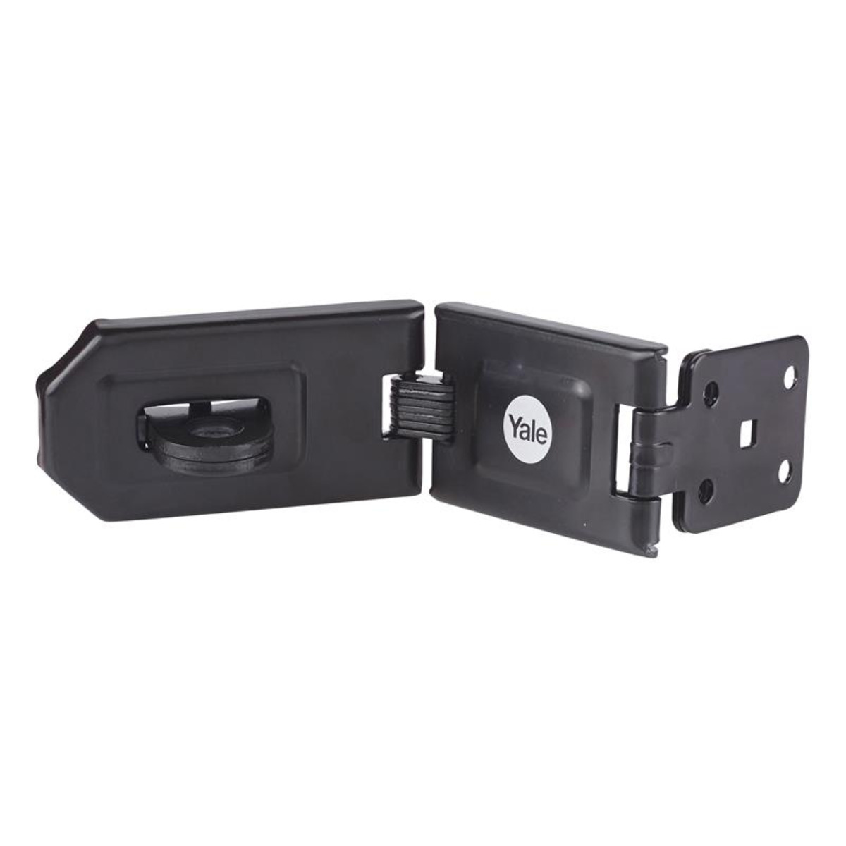 Yale Locks Hardened Steel Hasp helps you secure your shed, gate, or other outdoor items that you need to keep safe. With black coating for protection against corrosion. Tested to a minimum of 96 hours for corrosion resistance to ensure protection against weather conditions. Can be fixed around a corner.
