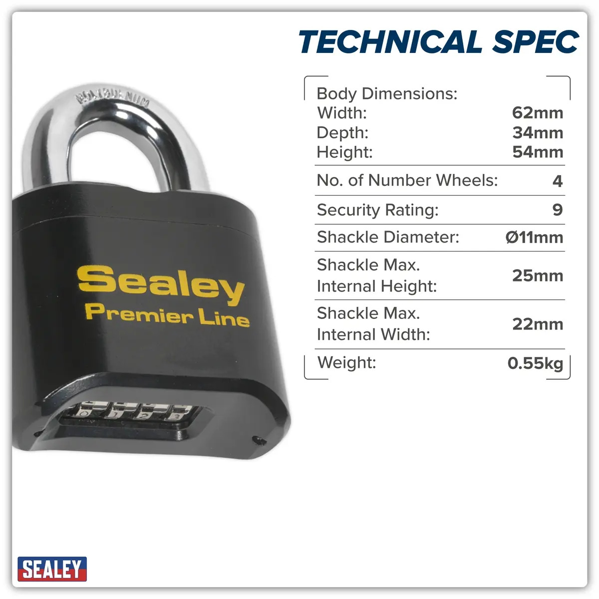 Sealey PL603 Premier™ Steel Body Combination Padlock 62mm
