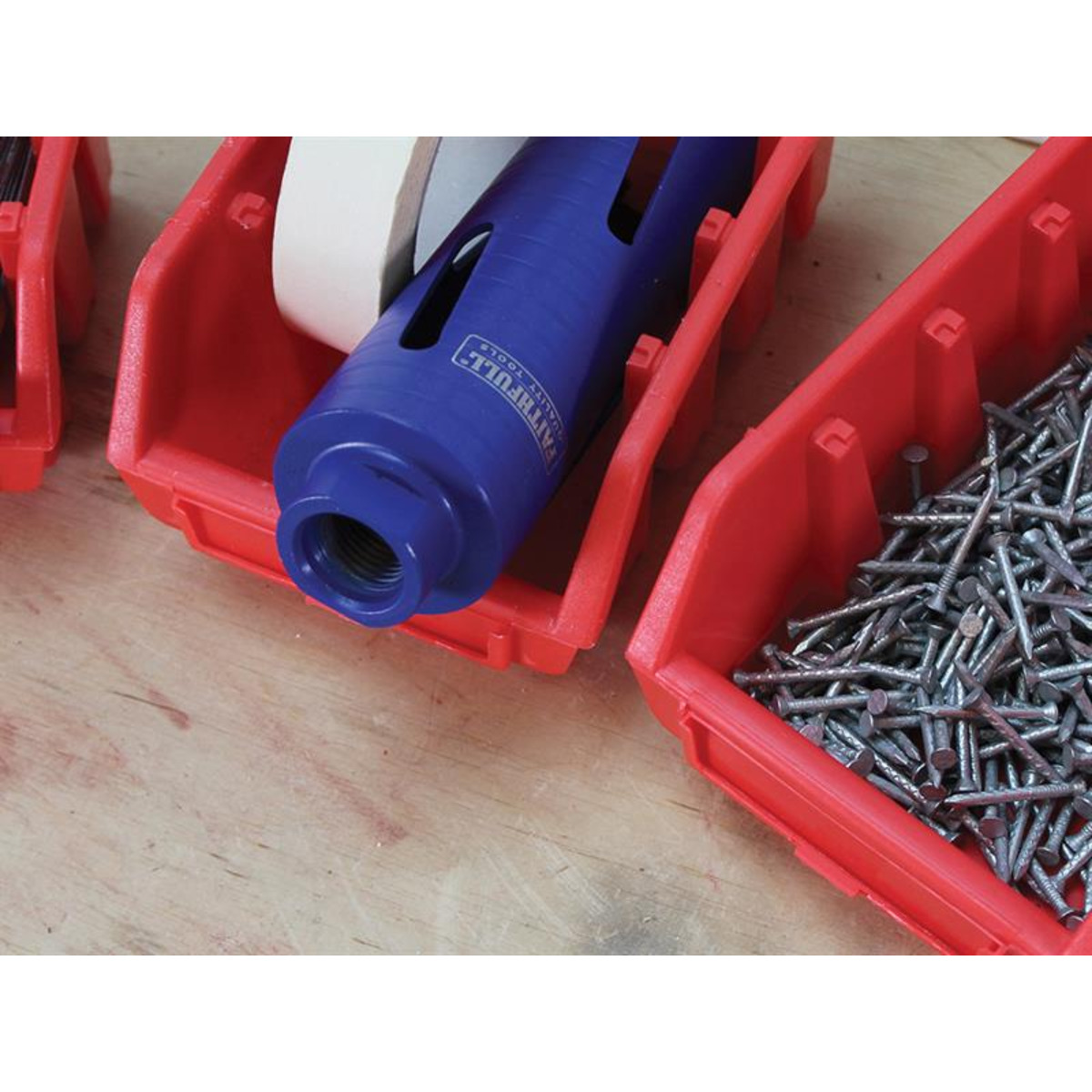 The Faithfull FAIPAN12 is 12 plastic storage bins with mounting rails ideal for workshop, garage or hobbies. The storage bin system is a quick and easy way to organise small accessories with easy access. This achieves clearly laid out storage for small parts such as nails, wall plugs, screws etc. The bins are manufactured from shockproof polymer which is resistant to mild acids, solvents and oils. They have high thermal stability and resist damage from extremes of temperature. The plastic mounting rails can be configured in 1 row of 12, 2 rows of 6 or 4 rows of 3. The Faithfull FAIPAN12 contains the following: 12 Small Bins (Red): 160 x 100 x 75 mm. 4 Plastic Wall Mounting Rails. Mounting Screws and Wall Plugs.