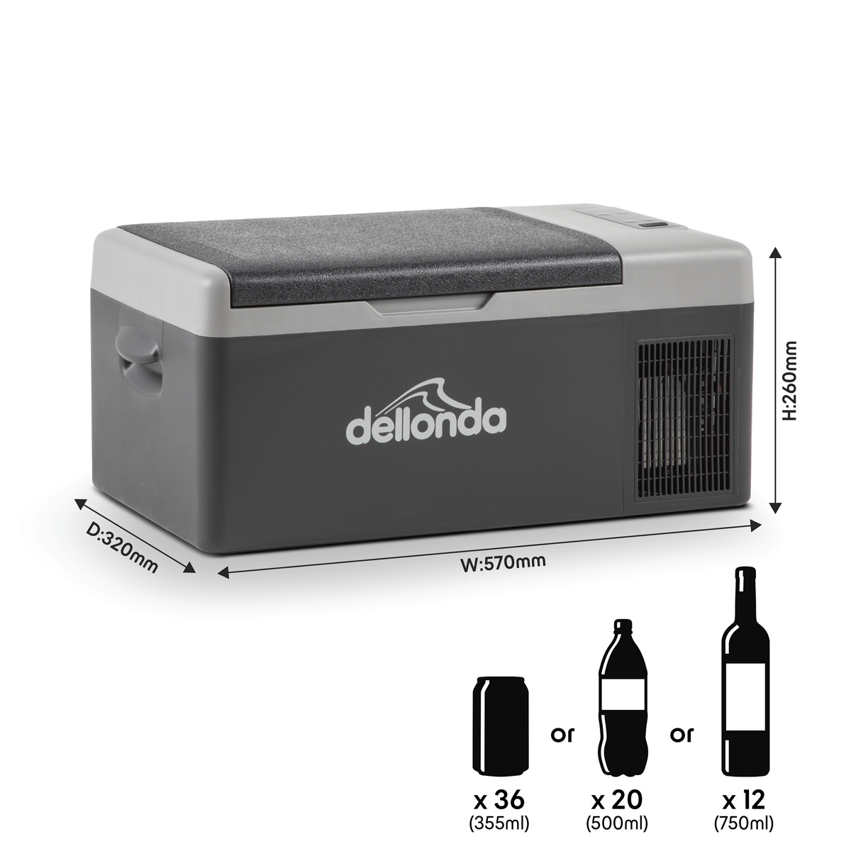 FULLY PORTABLE - 15L Portable compressor fridge freezer cool box. Lightweight and compact design with handles allowing you the flexibility to take with you anywhere you go. PERFECT FOR NUMEROUS SETTINGS - Ideal for long road trips, camping or fishing trips, caravan holidays and general travel use. CAN BE USED IN THE CAR - AC to DC Adapter sold separately (Model No. DL129), giving you the option to use at home as well in your vehicle with a 12V plug. BROAD TEMPERATURE RANGE - Single compartment allowing a temperature ranging from -20°C to 20°C. LED DISPLAY An electronic thermostat with LED digital temperature display makes it easy to adjust and monitor the temperature. EXTERNAL DIMENSIONS (W x D x H): 57 x 32 x 26cm. INTERNAL DIMENSIONS (W x D x H): 35 x 24.5 x 185cm. POWER CONSUMPTION - 0.27kWh / 24hr.