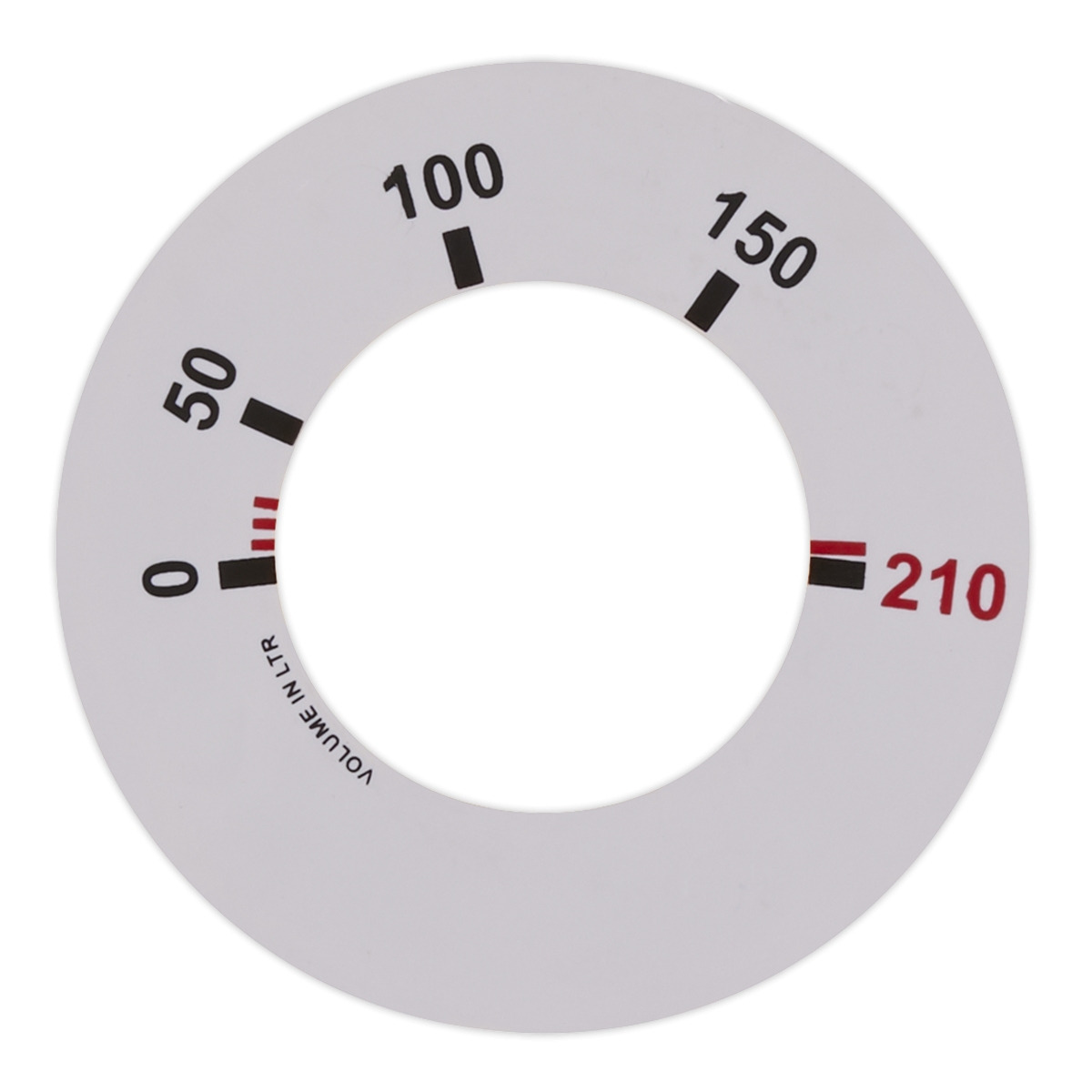 - Indicator face is marked from 0-210L.