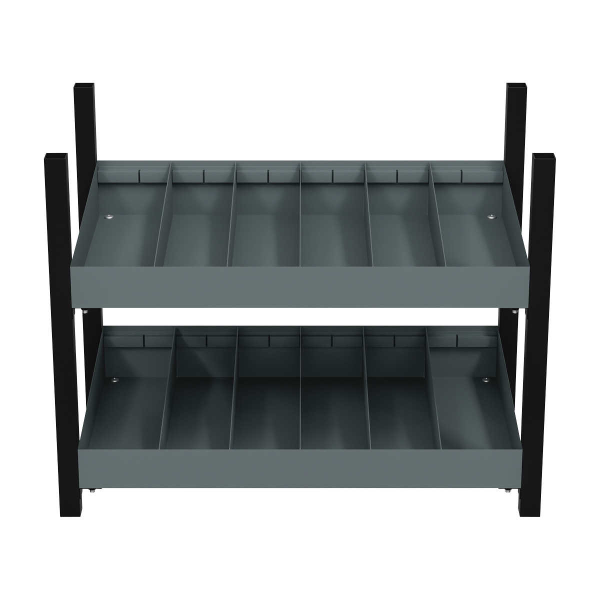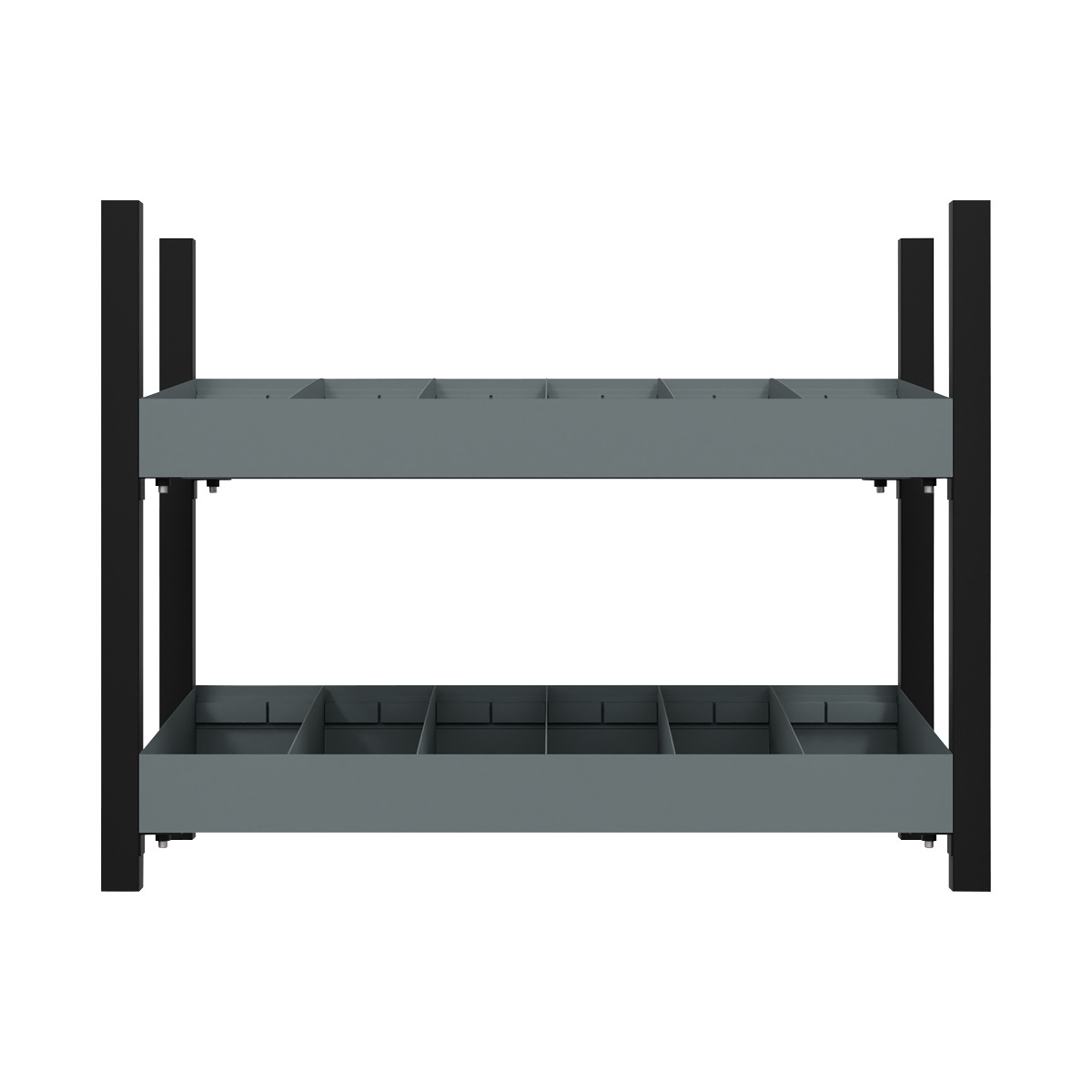 WORKSHOP READY - Textured powder coated finish to protect against rusting. MODULAR - Pushes together with base, middle and top units (sold separately) to create versatile storage for the garage, workshop or office. EASY ASSEMBLY - Screws together in minutes using pre-fitted rivet nuts. STAY ORGANISED - Compartment shelves to keep small parts separated and easily accessible. OVERALL SIZE (W x D x H): 580 x 340 x 444mm.
