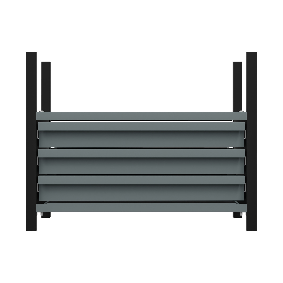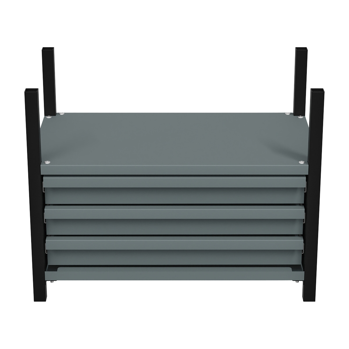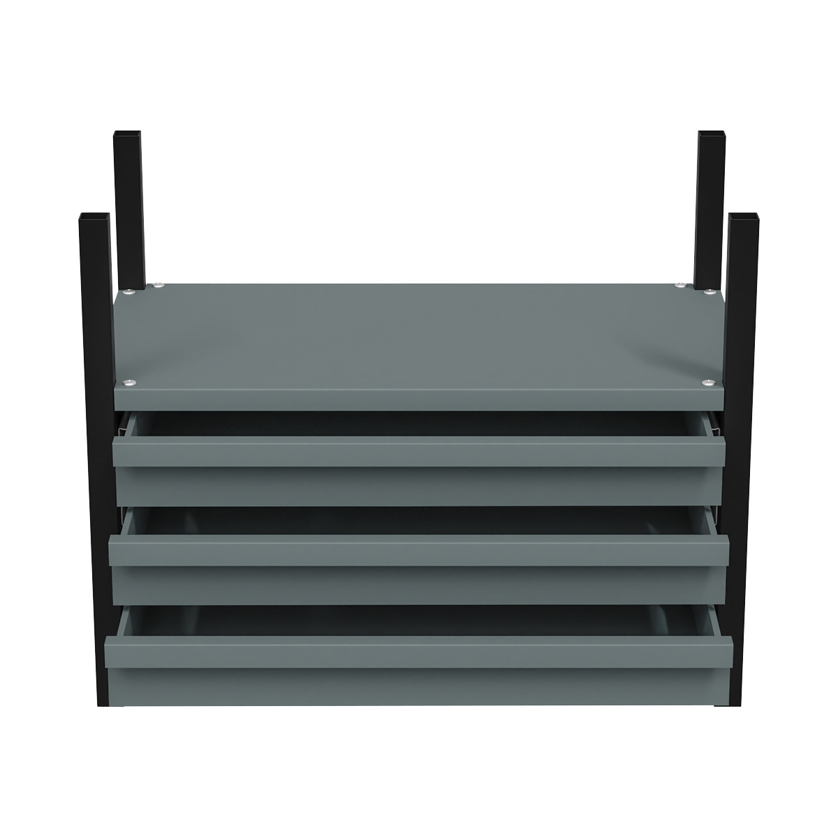 WORKSHOP READY - Textured powder coated finish to protect against rusting. MODULAR - Pushes together with base, middle and top units (sold separately) to create versatile storage for the garage, workshop or office. EASY ASSEMBLY - Screws together in minutes using pre-fitted rivet nuts. SMOOTH OPENING - Ball-bearing drawer runners for smooth operation. DRAWER CAPACITY - 15kg per drawer. OVERALL SIZE (W x D x H): 580 x 340 x 444mm.