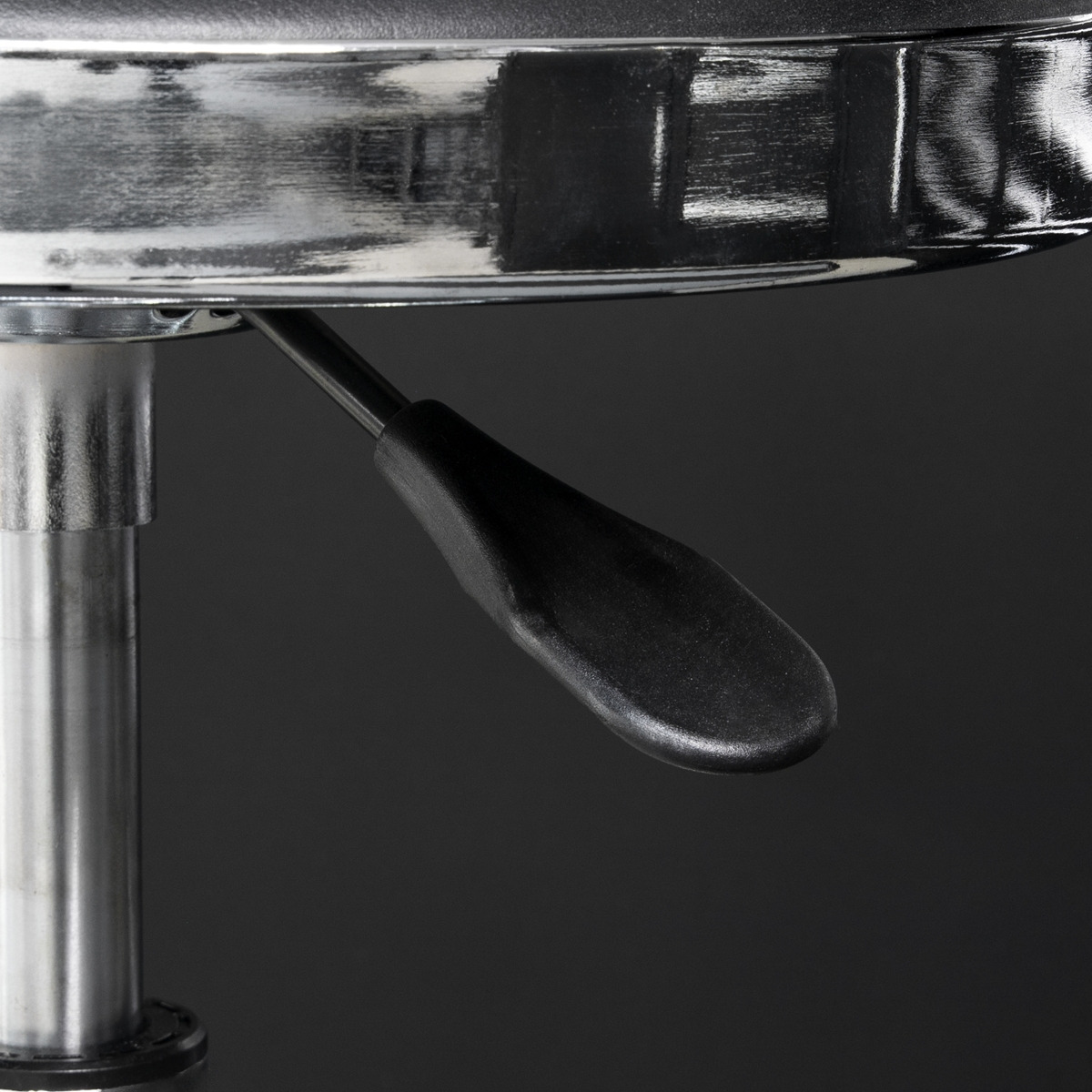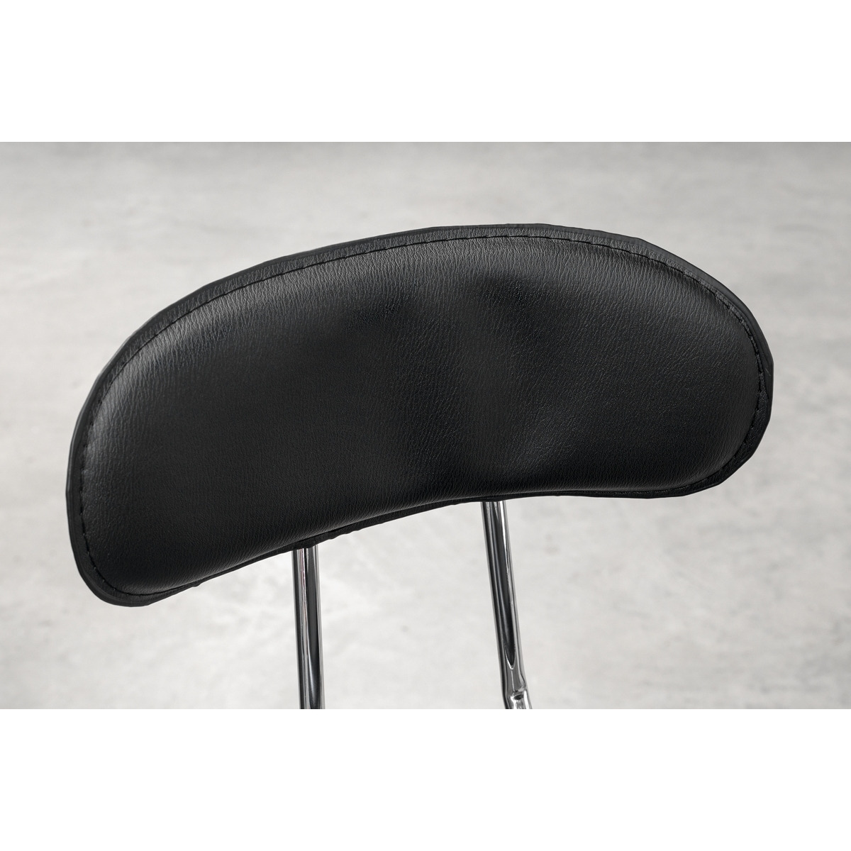 4-Legged heavy-duty steel construction with a polished chrome plate finish for corrosion resistance. Heavy-duty Ø32mm strengthening ring for stability which also acts as a foot rest. Pneumatic seat height adjustment range: 695-815mm. Ø365mm Swivel seat rotates fully through 360° and is made from high-density foam with a black PU imitation leather cover for extra comfort and style.