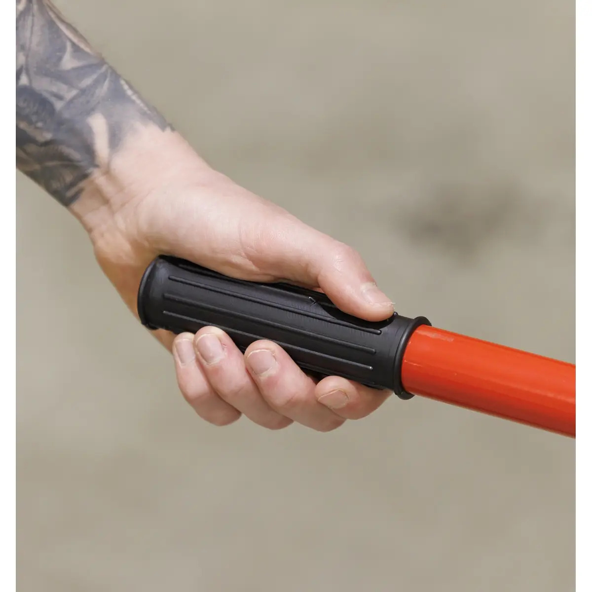 Strong tubular steel construction with welded joints. Our aluminium sack trucks are fitted with heavy-duty solid rubber wheels and cannot be punctured by sharp objects. They are also resistant to most oils, grease and many common chemicals, perfect for work on building site. Can be rested on handles for flat loading. Fitted with rubber handgrips. Wheel size: Ø210mm.