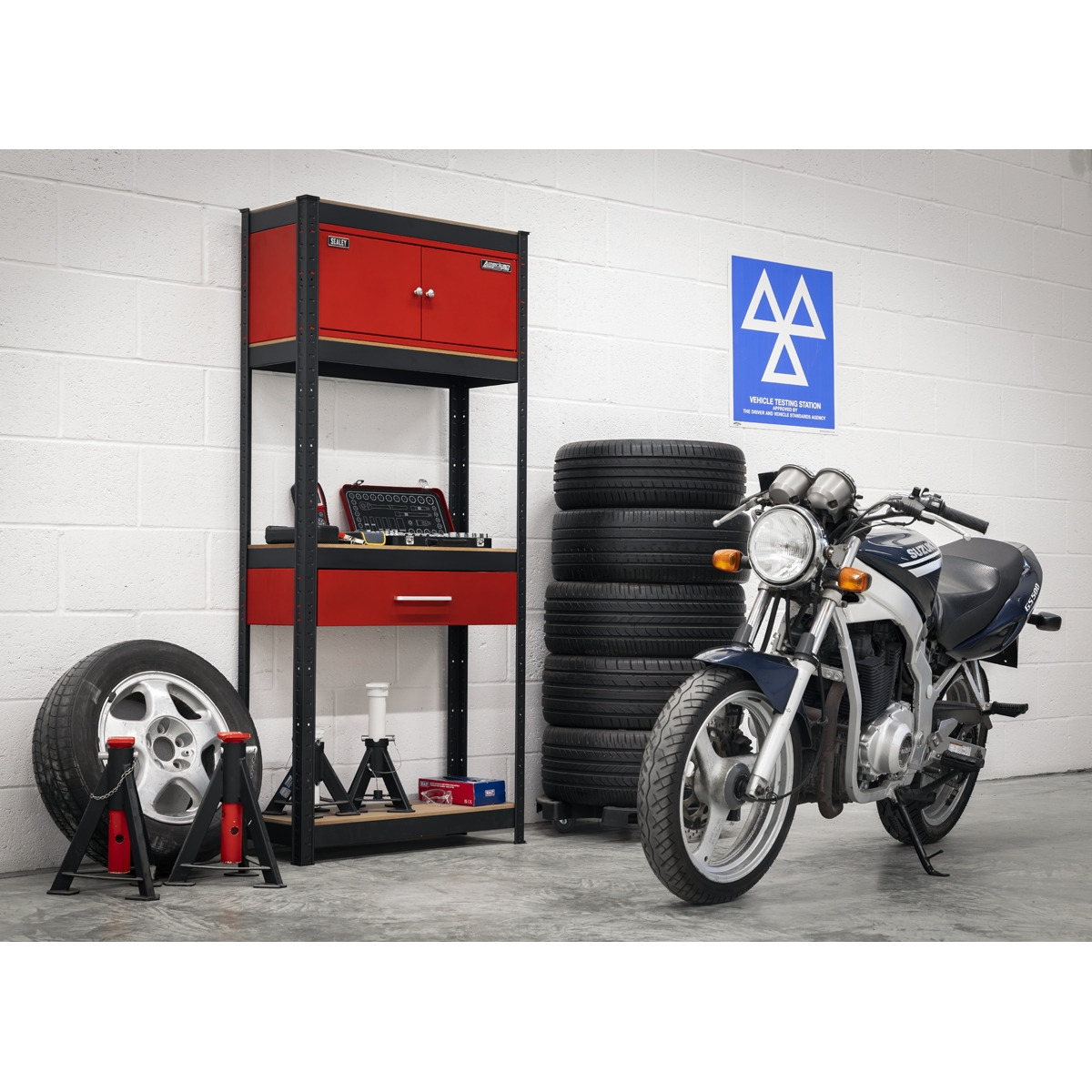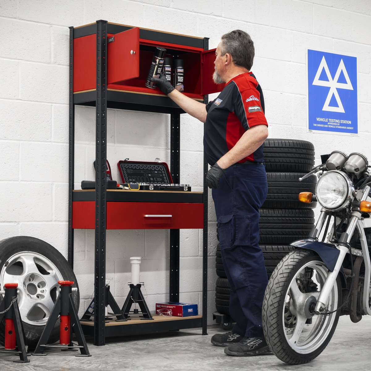Sealey AP830R Shelving Unit 4-Tier with Cupboard & Drawer