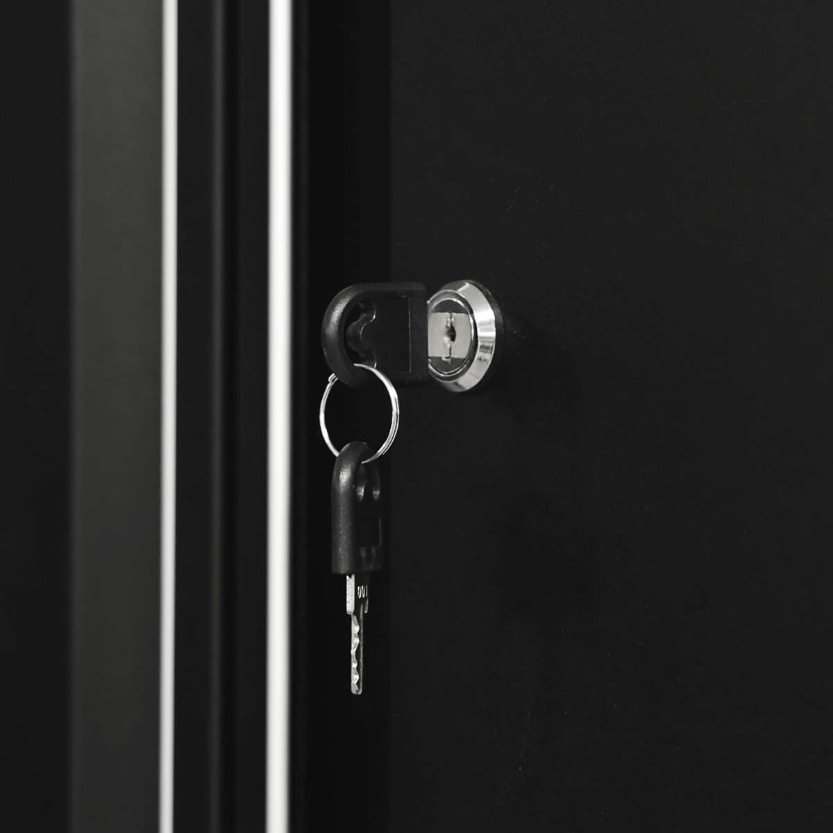 Our Rapid-Fit models are designed with a hinged system to fold-out from flat-pack to finish in minutes. Fitted with magnetic door latches. Base units fitted with adjustable feet. Extra units available to extend the storage system if required. Quick and easy to assemble, some basic tools required. Overall Size (W x D x H): 775 x 460 x 2080mm. Comprises of two stackable units. 5 Year Guarantee*.