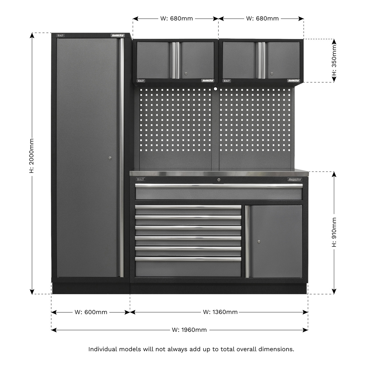 Sealey APMSSTACK10SS Superline PRO® Storage System with Stainless Steel Worktop 1.96m