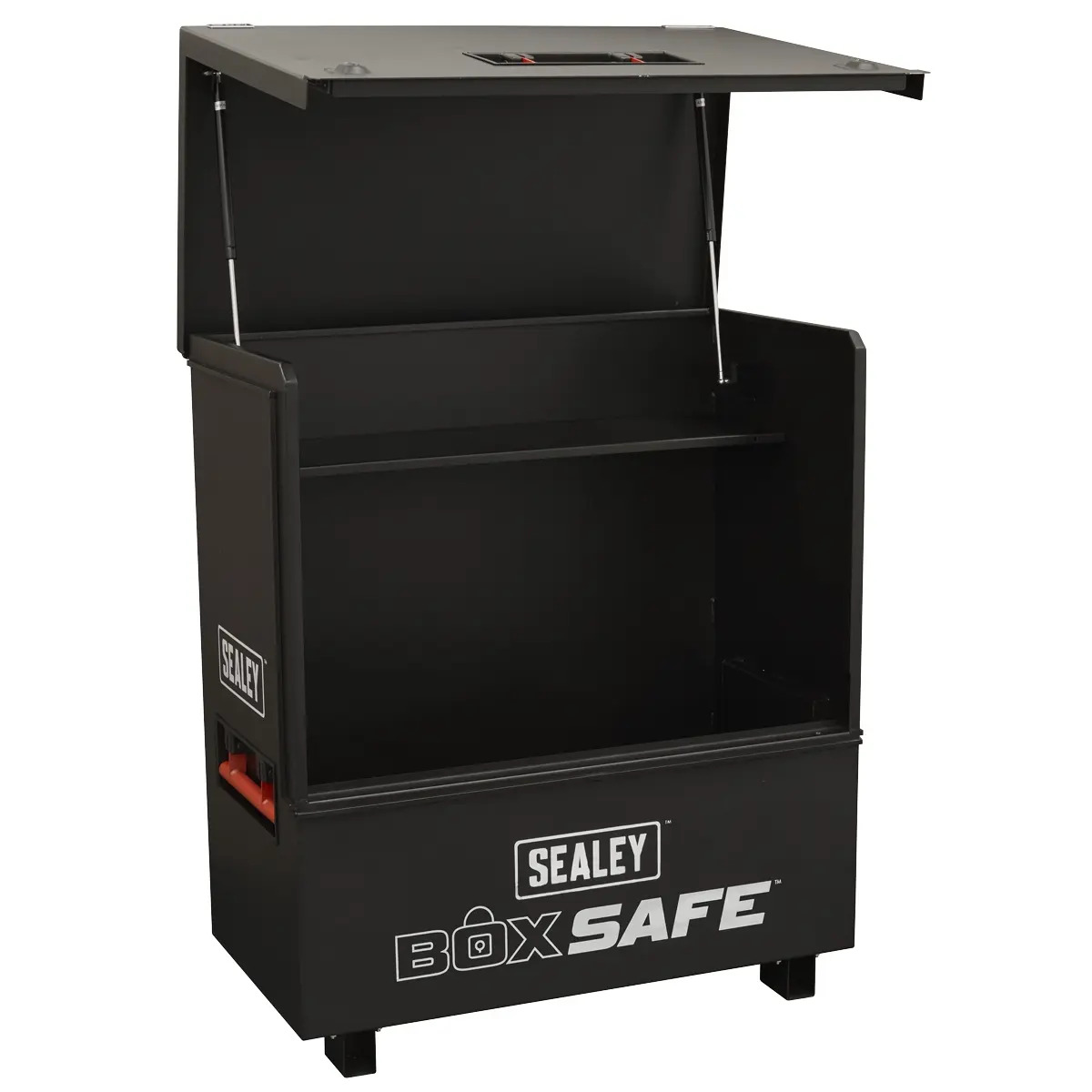 SECURE TOOL STORAGE - Van vault suitable for secure storage of tools and heavy equipment, on site, in-vehicle, in the workshop or at home. EASY TO USE - Additional storage shelf inside the unit is ideal for having tools in clear view and at arms length, ready for the job in hand. GAS STRUTS - Lid is supported by two gas struts to enable smooth opening and to hold open when required. SECURE - Features anti-jemmy seams on the inside and outside for increased security. BUILT-IN HANDLES - Features recessed heavy-duty handles on the sides and front to aid manoeuvrability. EASY TO MOVE - Welded feet allow the user to move with either a forklift, pallet truck, or to attach Model No. STVWK (optional castor wheel kit). DURABLE - Welded steel construction with folded lips for added strength and rigidity. LOCKABLE - Supplied with two keyed alike locks and six keys. 5 YEAR GUARANTEE*.