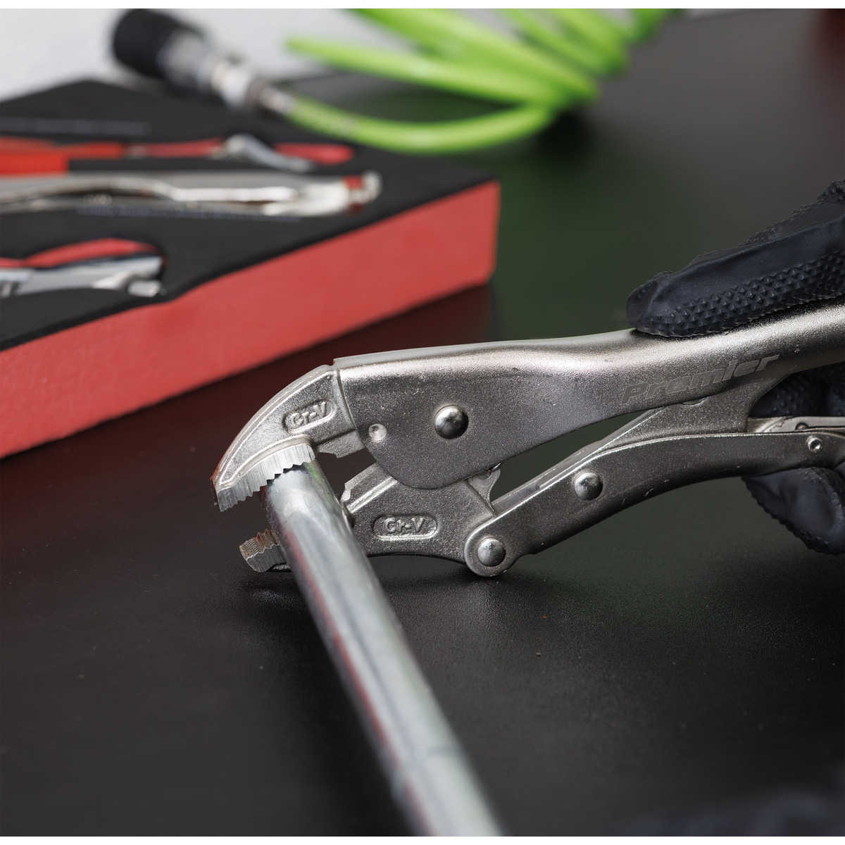 - 4PC LOCKING PLIERS AND ADJUSTABLE WRENCH SET - 150mm Adjustable Wrench, 250mm Adjustable Wrench, 225mm Long Nose Locking Pliers, 210mm Curved Jaw Locking Pliers.
