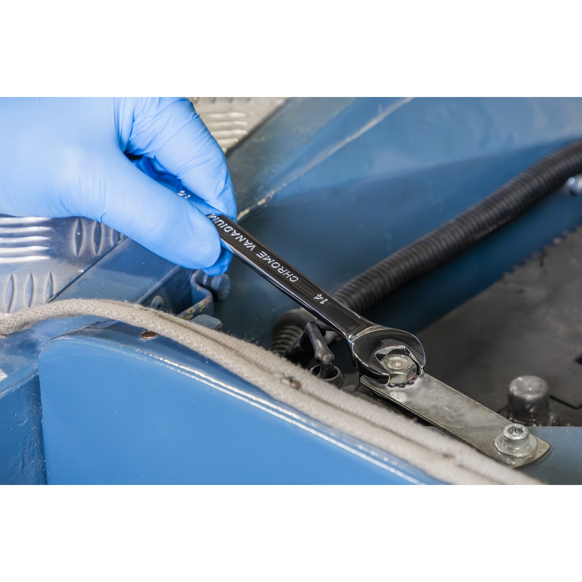 - 19PC COMBINATION SPANNER SET WITH TOOL TRAY – Contents: 6, 7, 8, 9, 10, 11, 12, 13, 14, 15, 16, 17, 18, 19, 22, 24, 27, 30, 32mm.